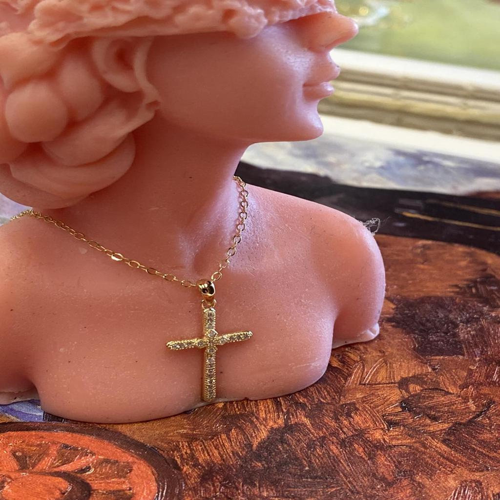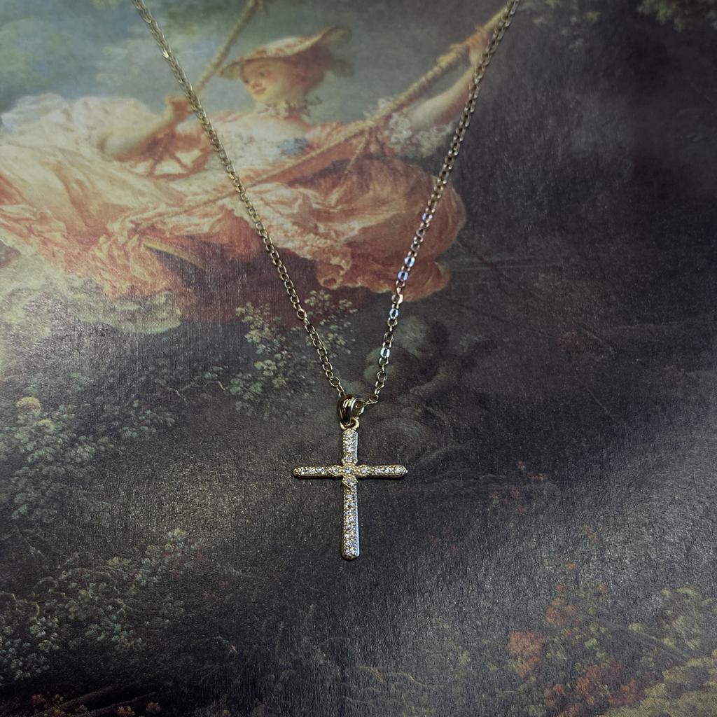 Ασημένιος σταυρός σε απόχρωση χρυσού με λευκά μικρά ζιργκόν