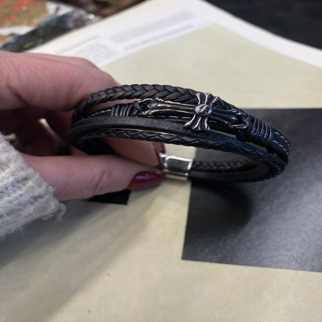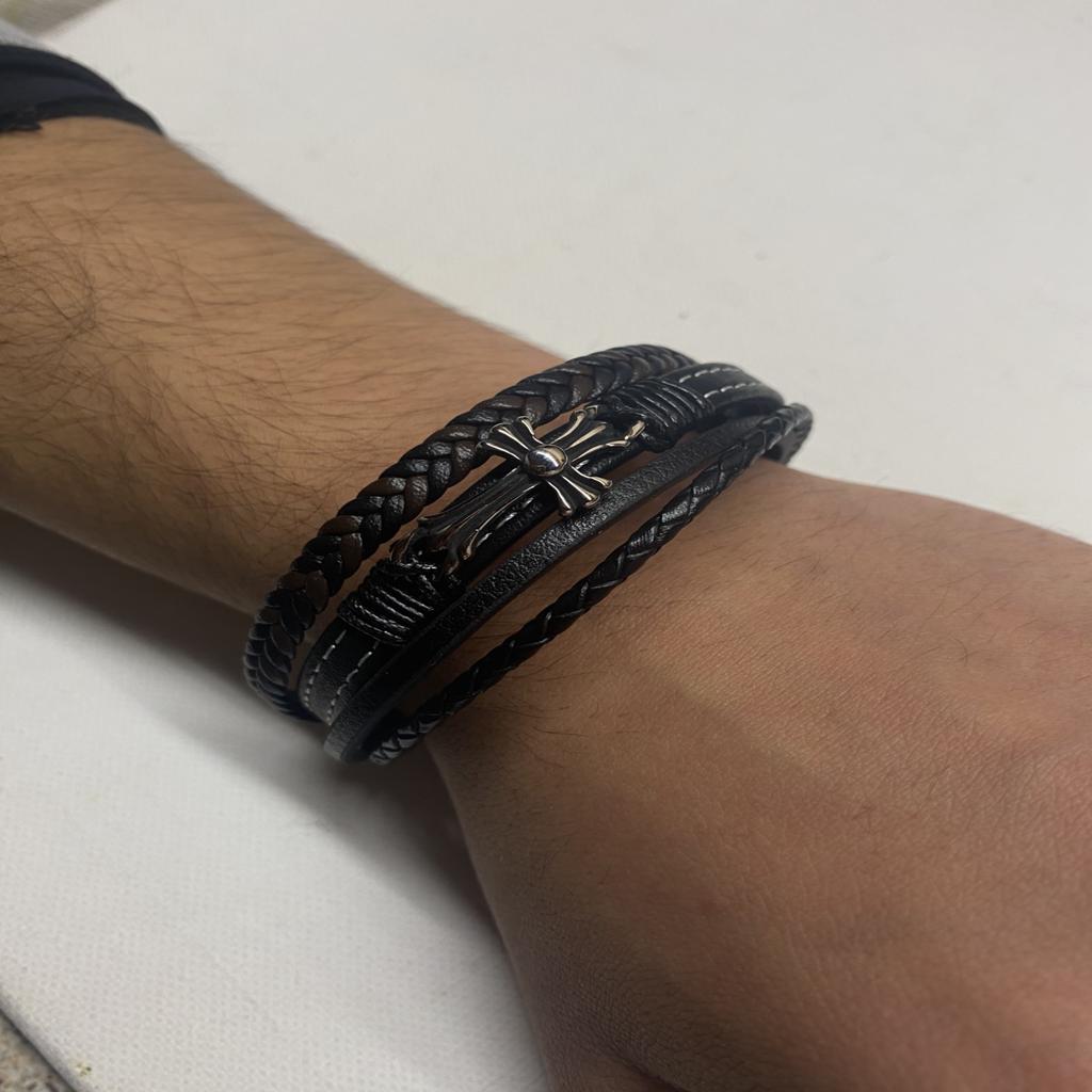 Ανδρικό βραχιόλι με 4 σειρές δέρμα και ατσάλινο σταυρό