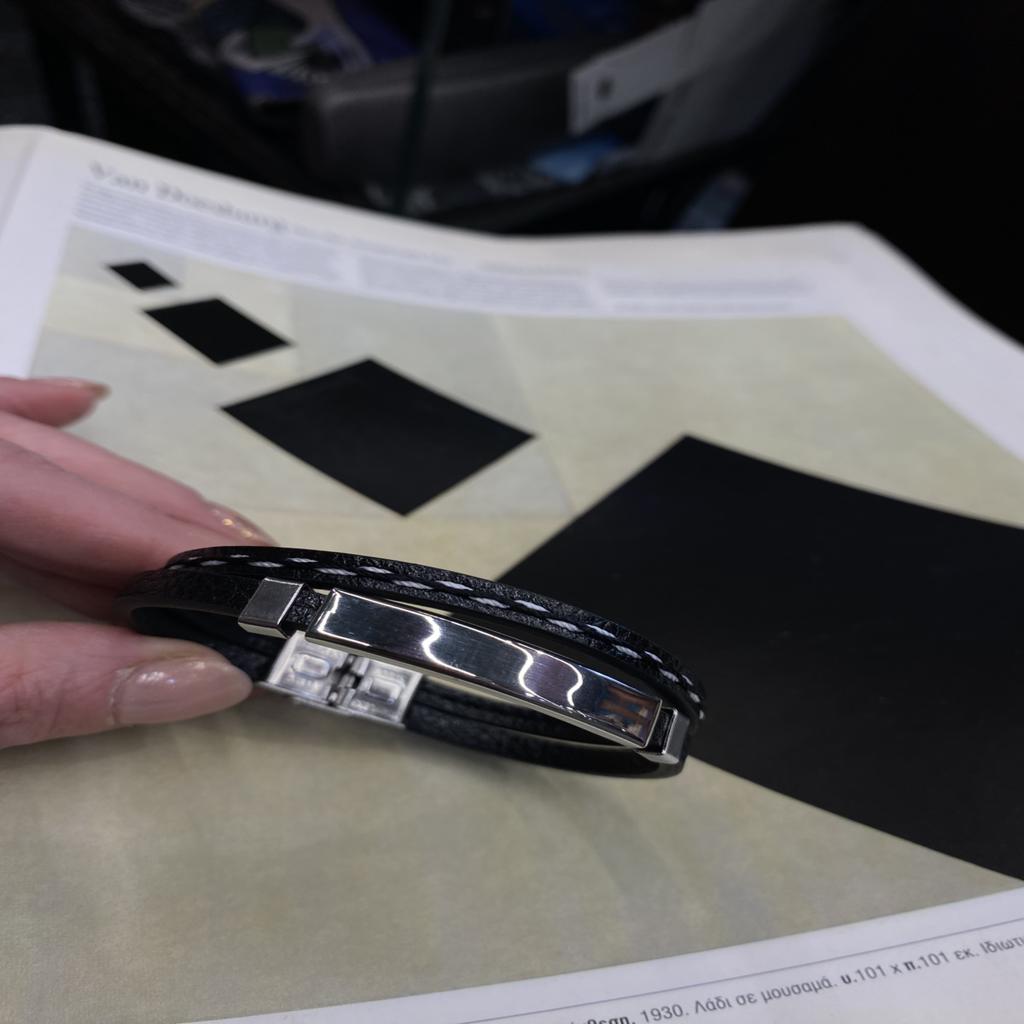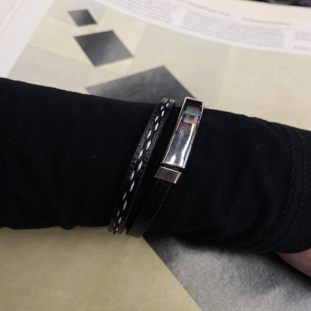 Βραχιόλι ανδρικό, διπλή σειρά δέρμα και ατσάλι