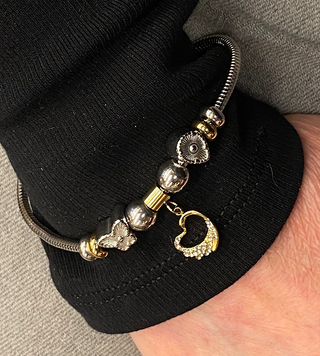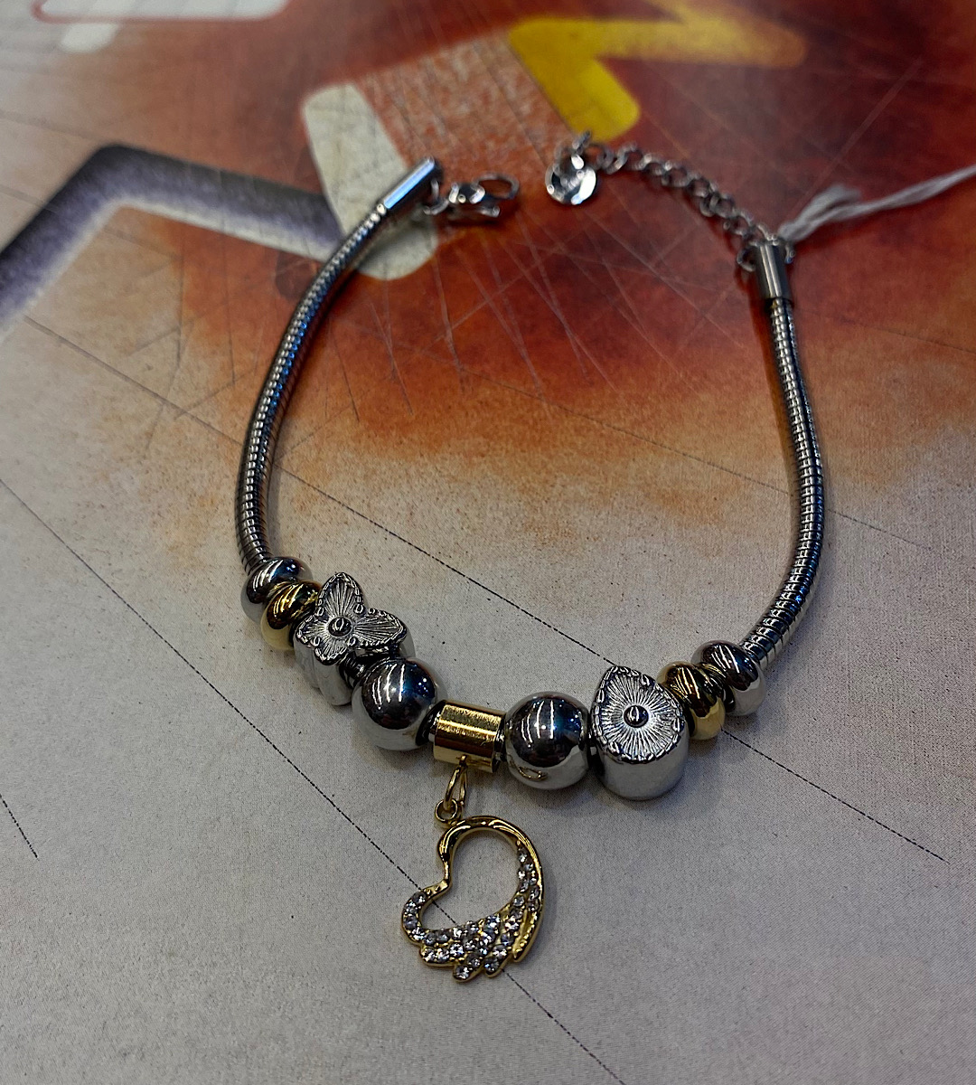 Δίχρωμο ατσάλινο βραχιόλι με κρεμαστή καρδιά
