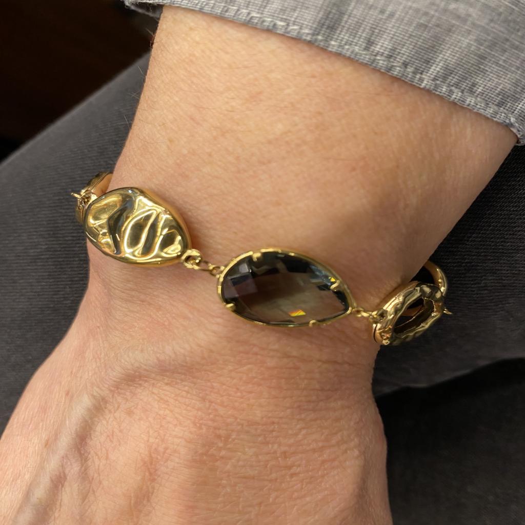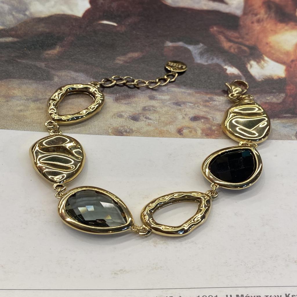 Γυναικείο, ατσάλινο βραχιόλι, σε απόχρωση χρυσού, με μαύρη και γκρι πέτρα