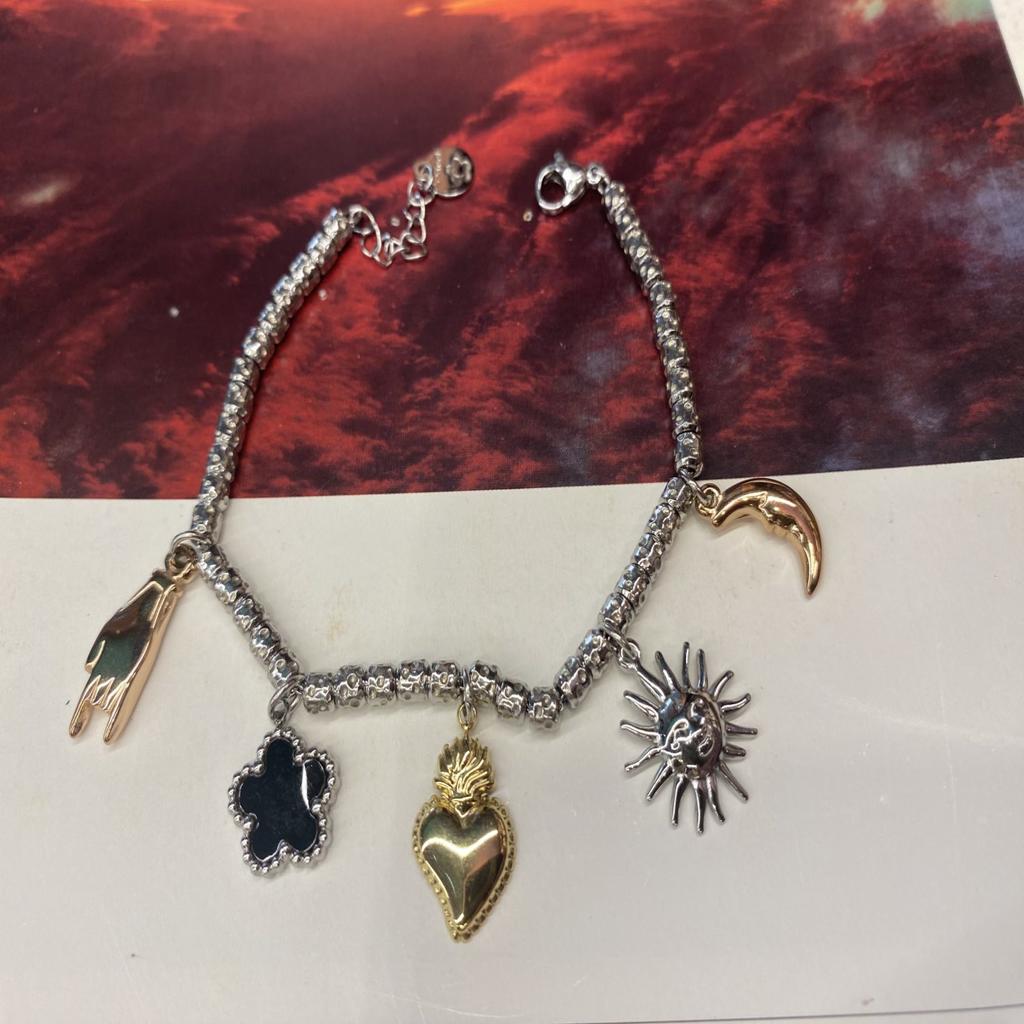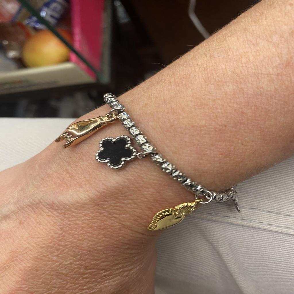 Βραχιόλι ατσάλινο, τρίχρωμο, με διάφορα κρεμαστά στοιχεία