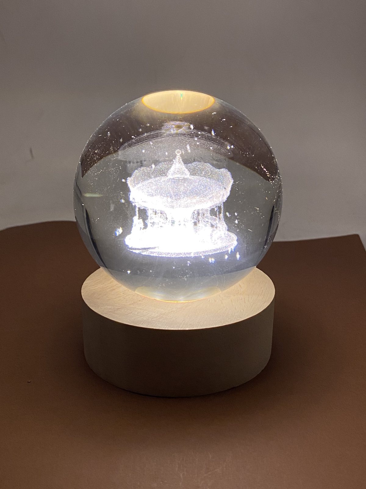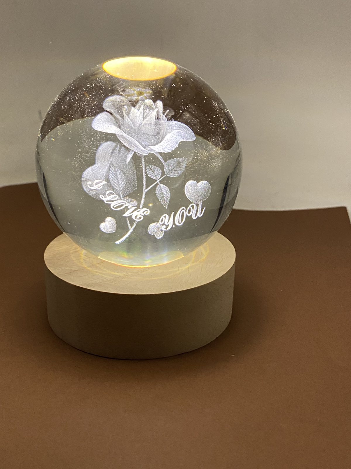 Ξύλινη βάση με Γυάλα με Χάραξη σε διάφορα σχέδια & Led Φως Λειτουργία με μπαταρία