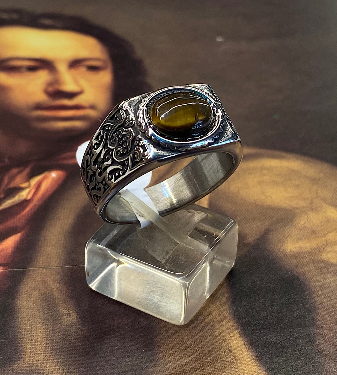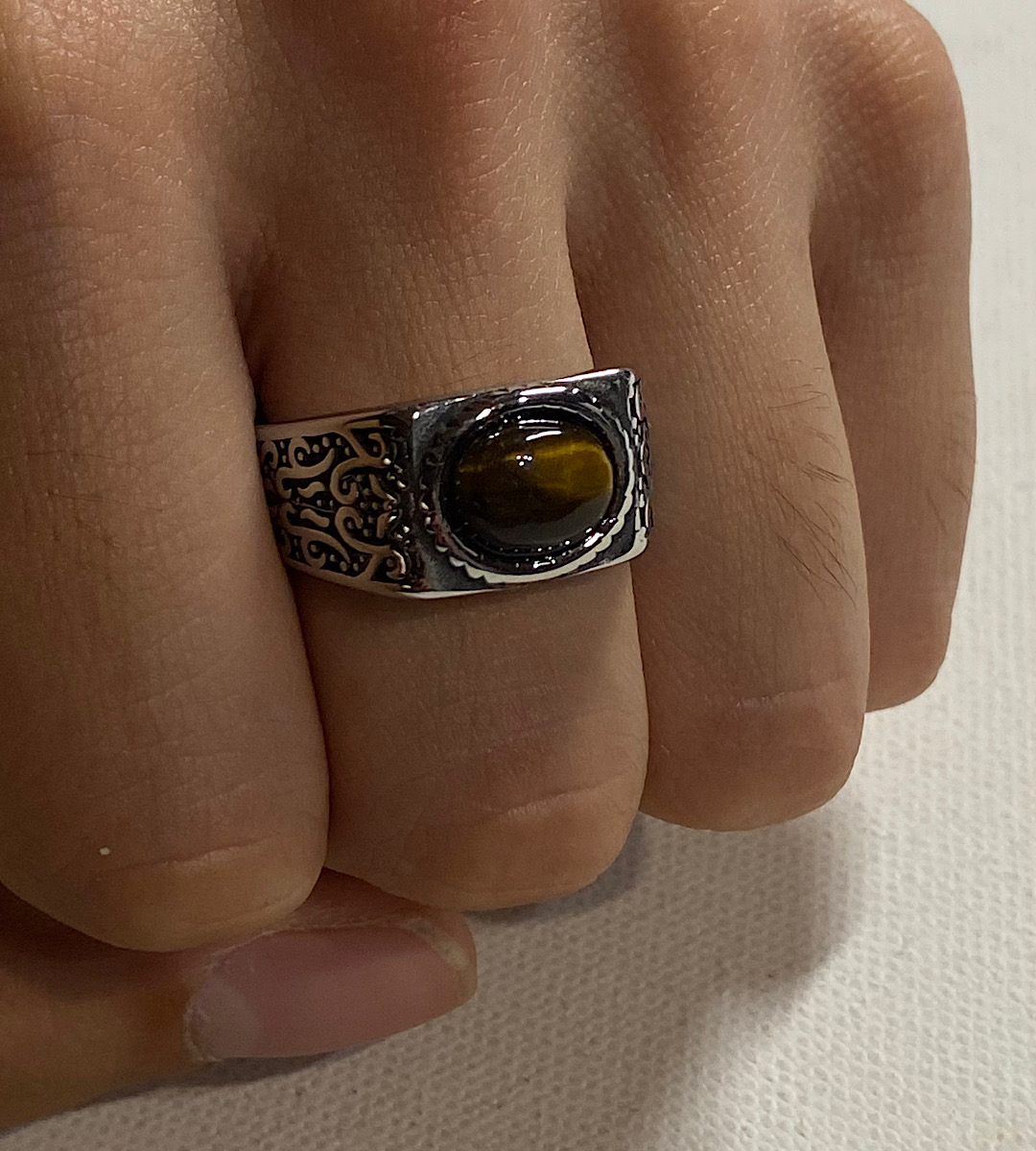 Δαχτυλίδι ανδρικό,ατσάλινο με μάτι τίγρη
