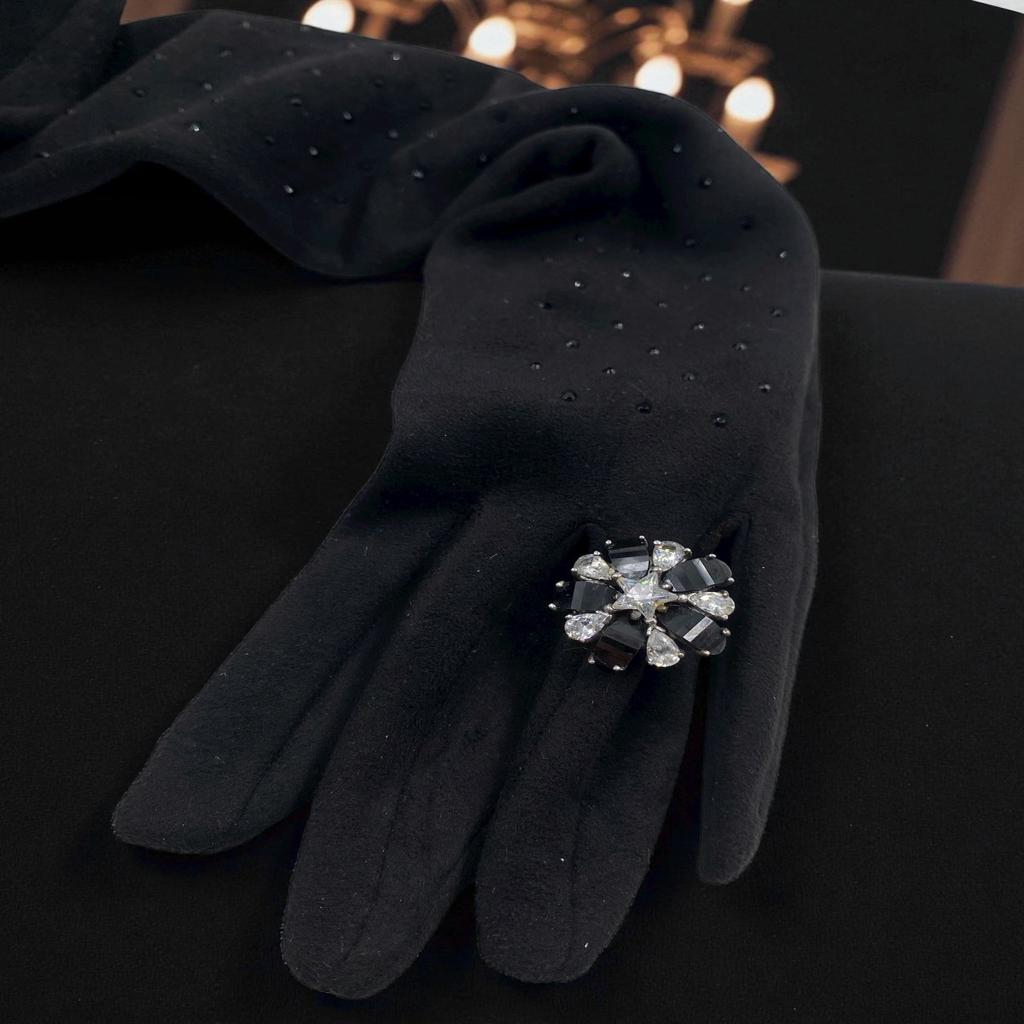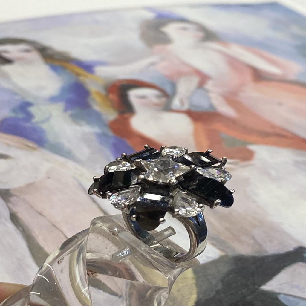 Ασημένιο δαχτυλίδι, λουλούδι με ασπρόμαυρα ζιργκόν και αστέρι στο κέντρο
