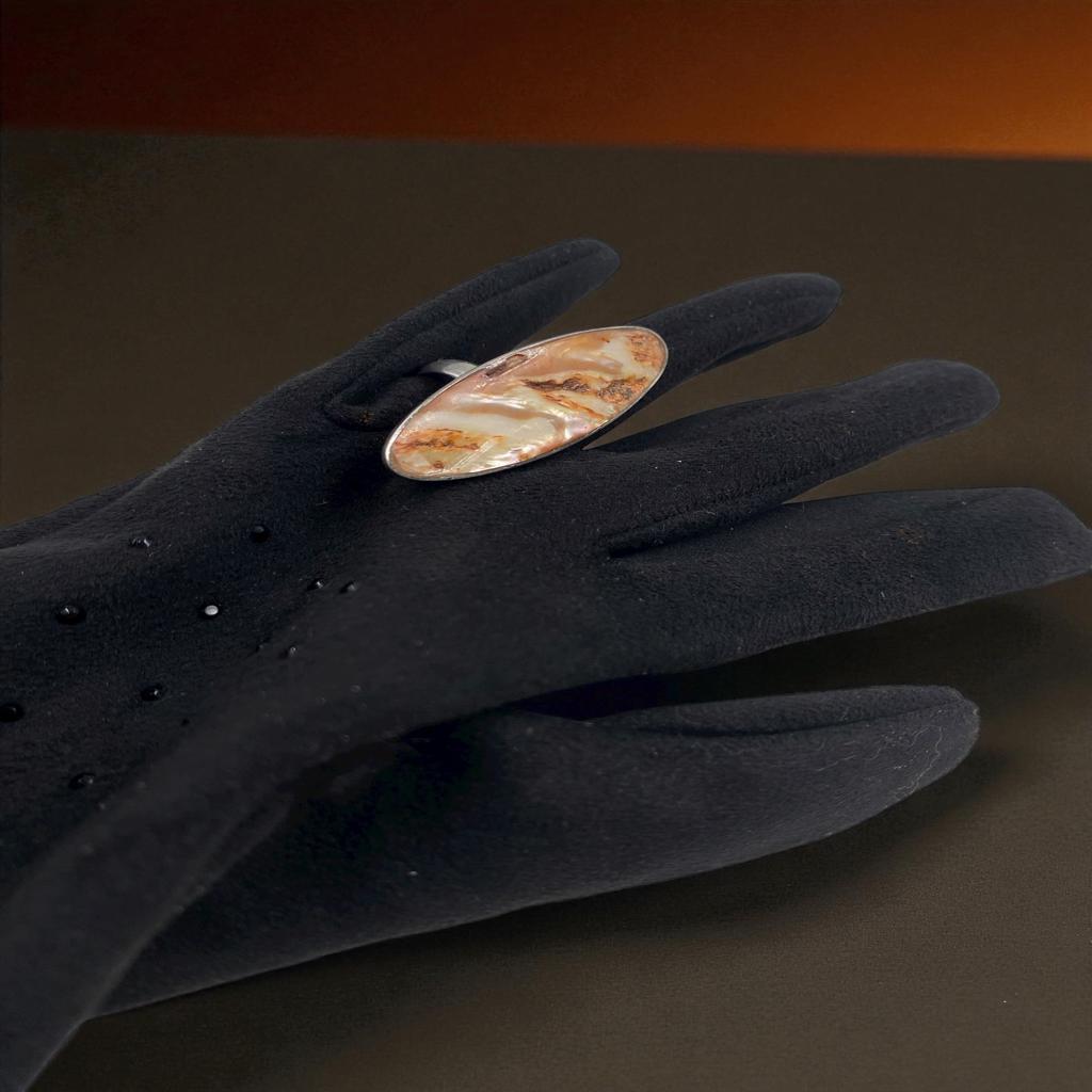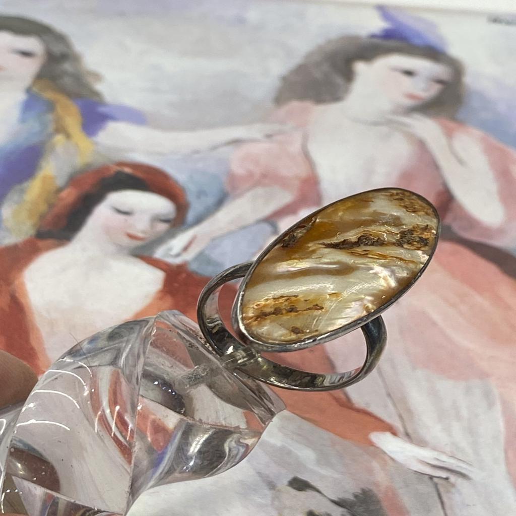 Χειροποίητο δαχτυλίδι ασημένιο με οβάλ καφέ πέτρα
