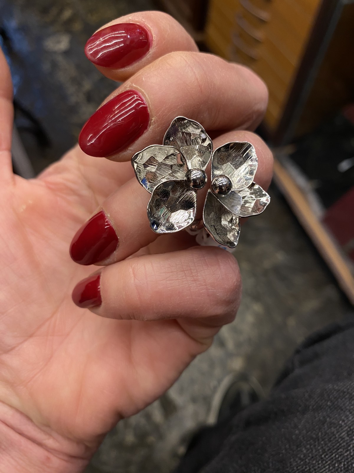 Δαχτυλίδι ατσάλινο, 2 λουλούδια αντικριστά