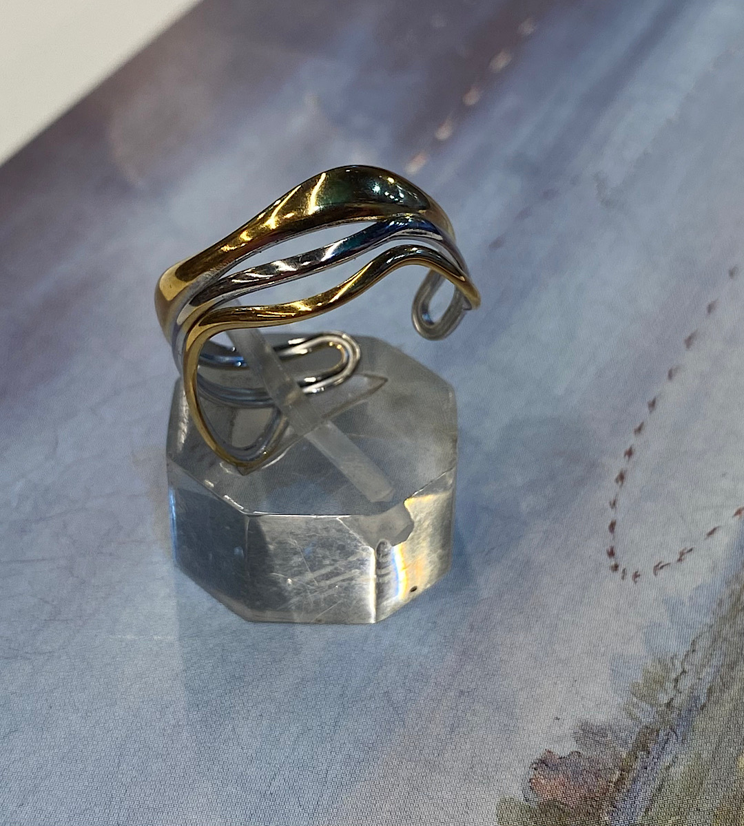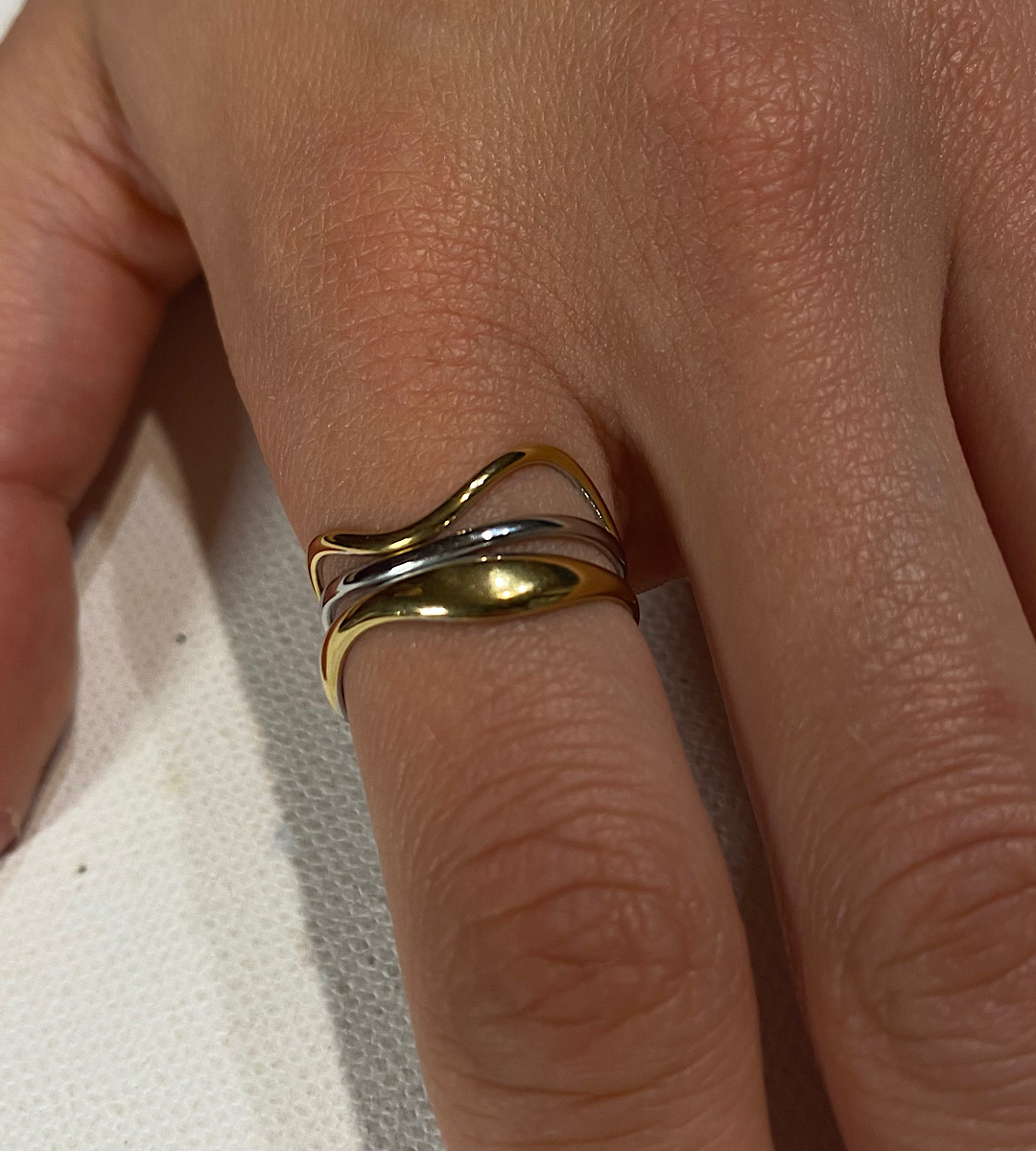 Δίχρωμο ατσάλινο δαχτυλίδι με κυματιστές γραμμές