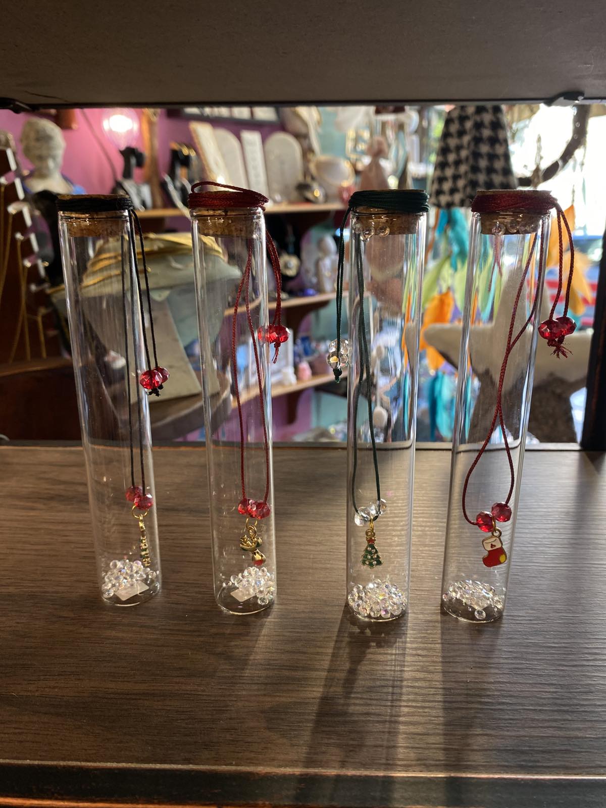 Επιτραπέζιο γούρι σε μακρόστενο βαζάκι με φελλό και κρυσταλλάκια στον πάτο