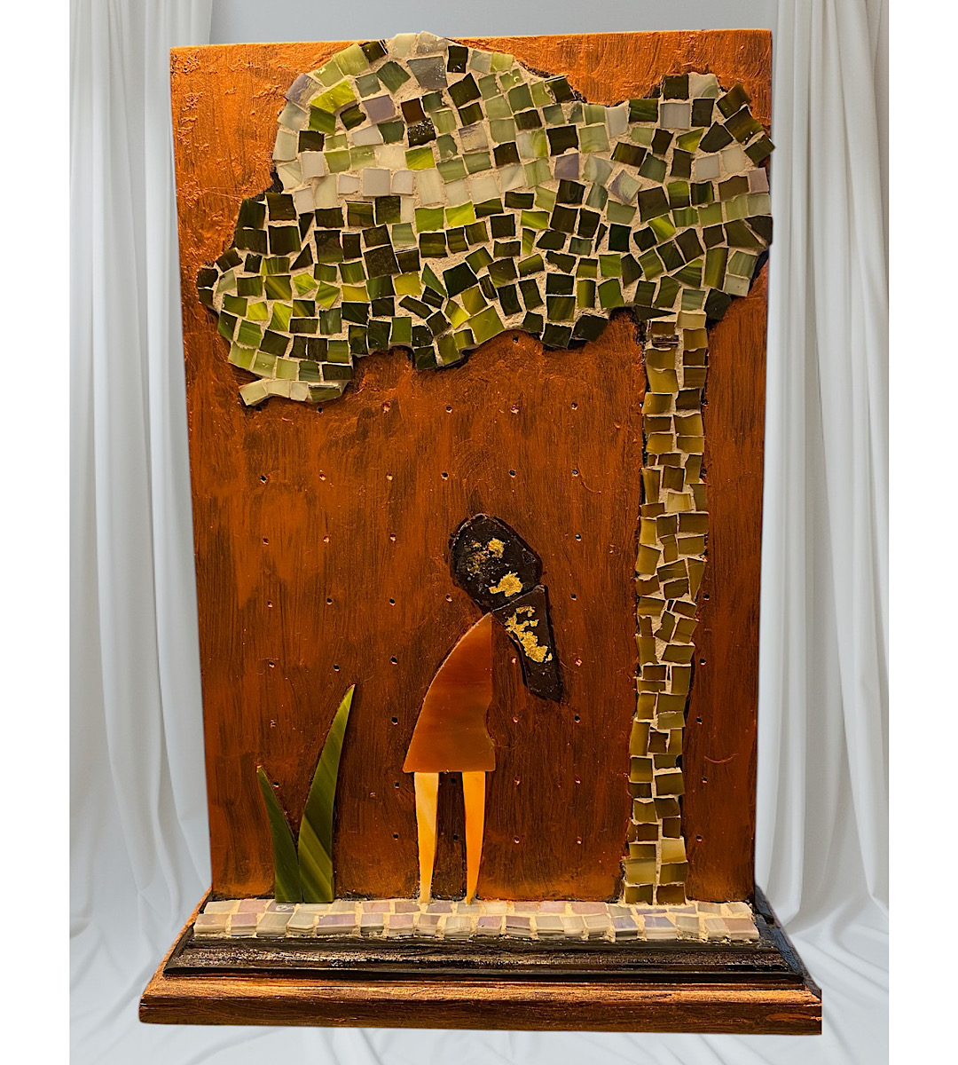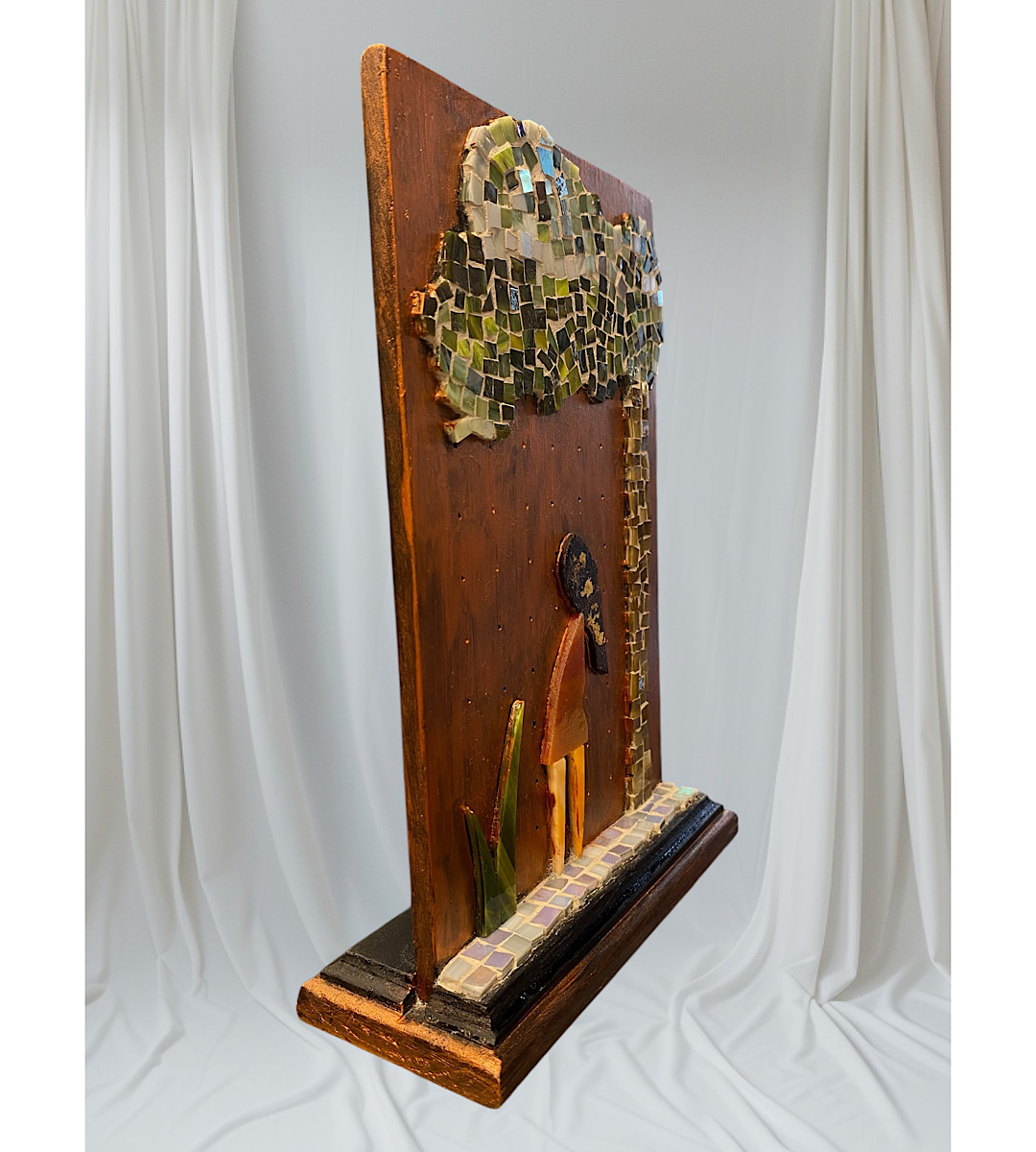 Ξύλινο επιτραπέζιο διακοσμητικό χειροποίητο Ψηφιδωτό με κορίτσι και δέντρο