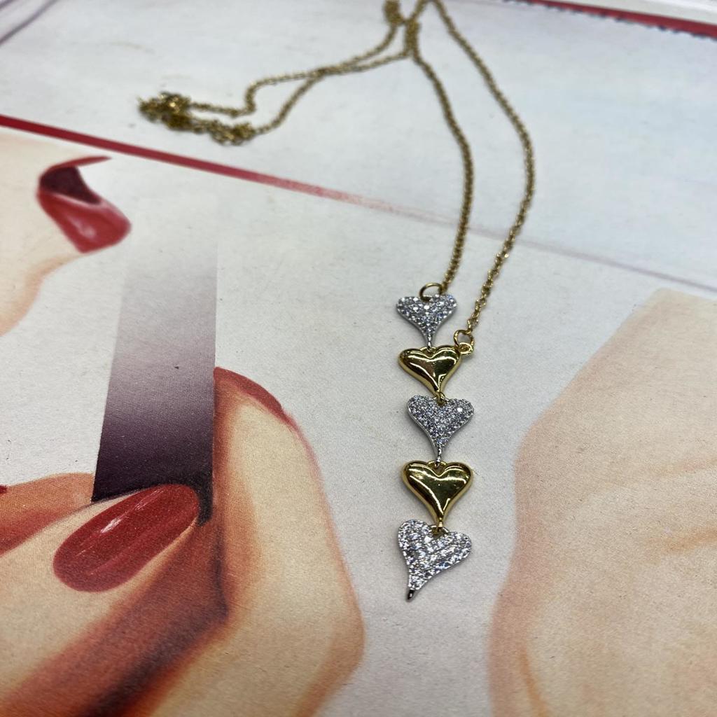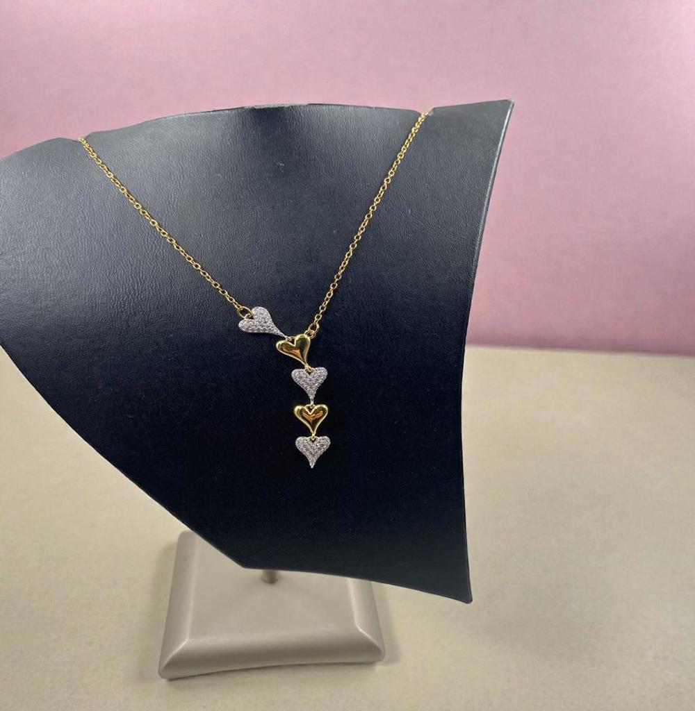 Δίχρωμο, ατσάλινο κολιέ με καρδούλες