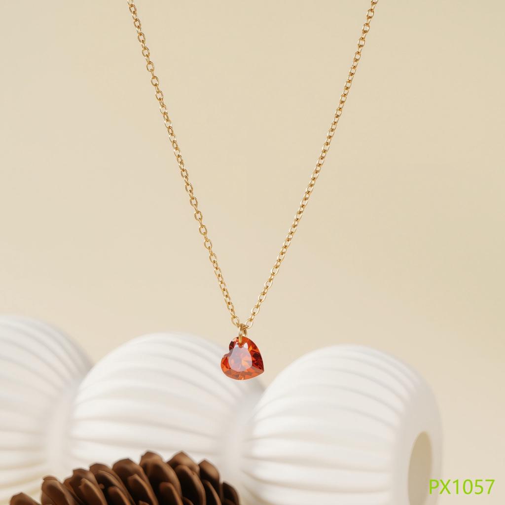 Κολιέ ατσάλινο, με κόκκινη καρδιά