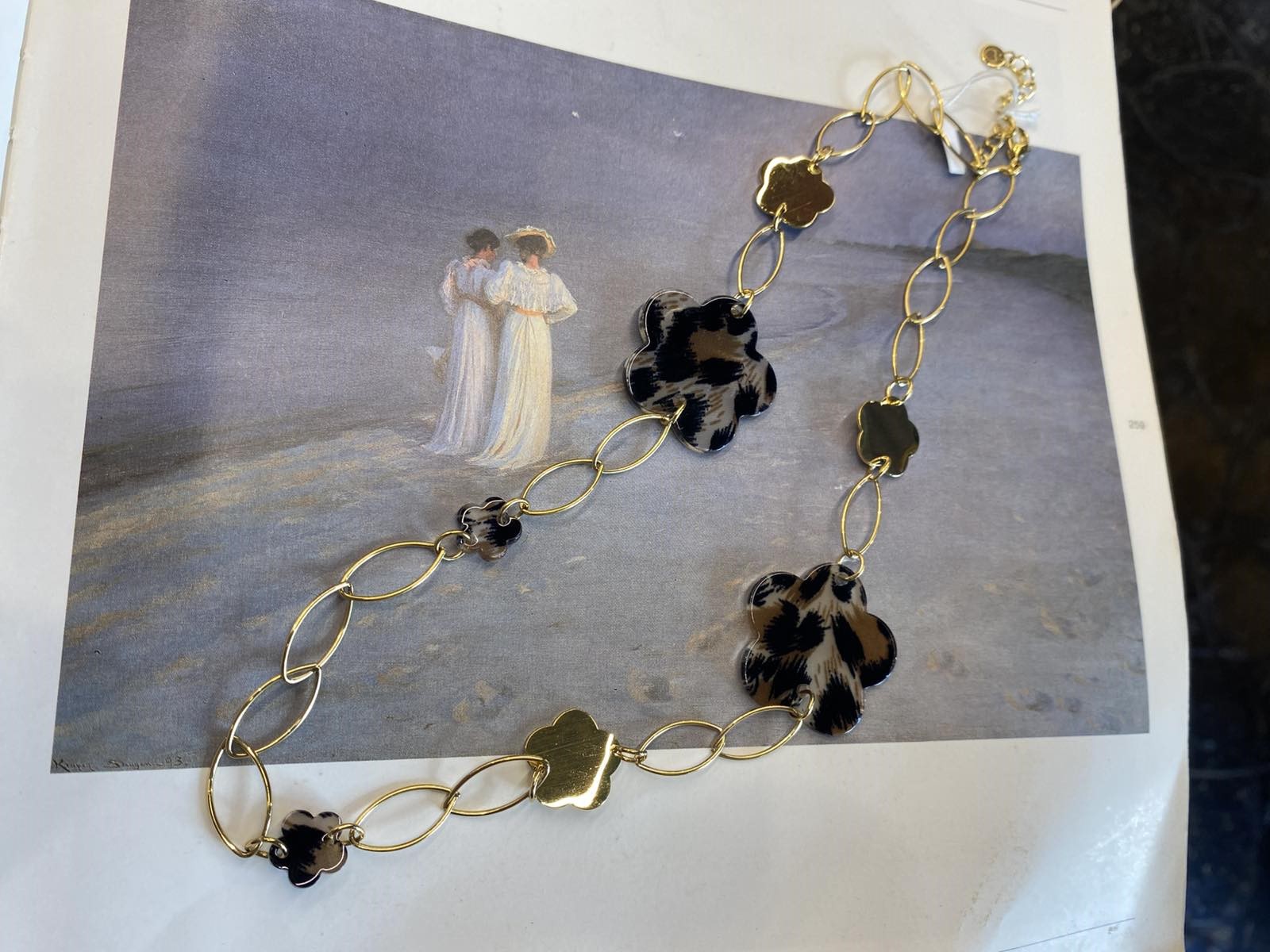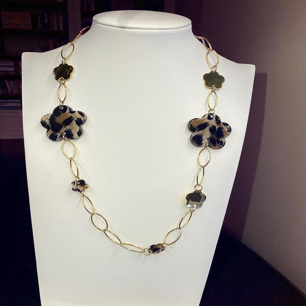 Κολιέ ατσάλινο, με λεοπάρ λουλούδια