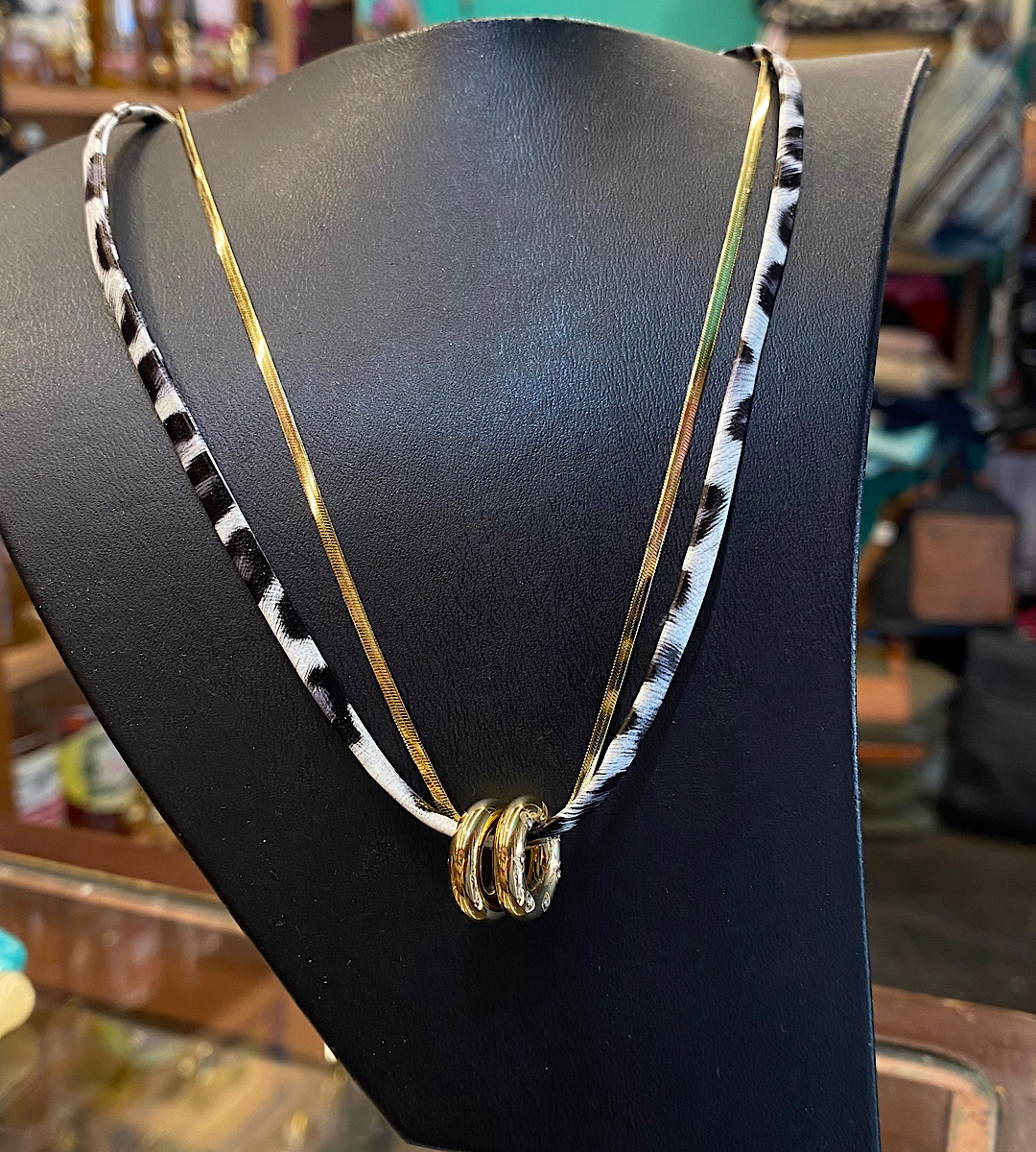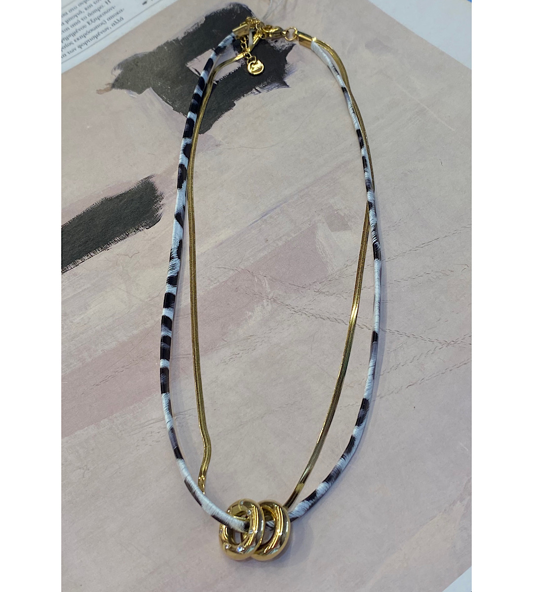 Διπλό ατσάλινο κολιέ με λεοπάρ τεχνόδερμα