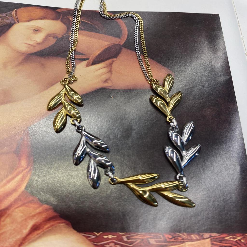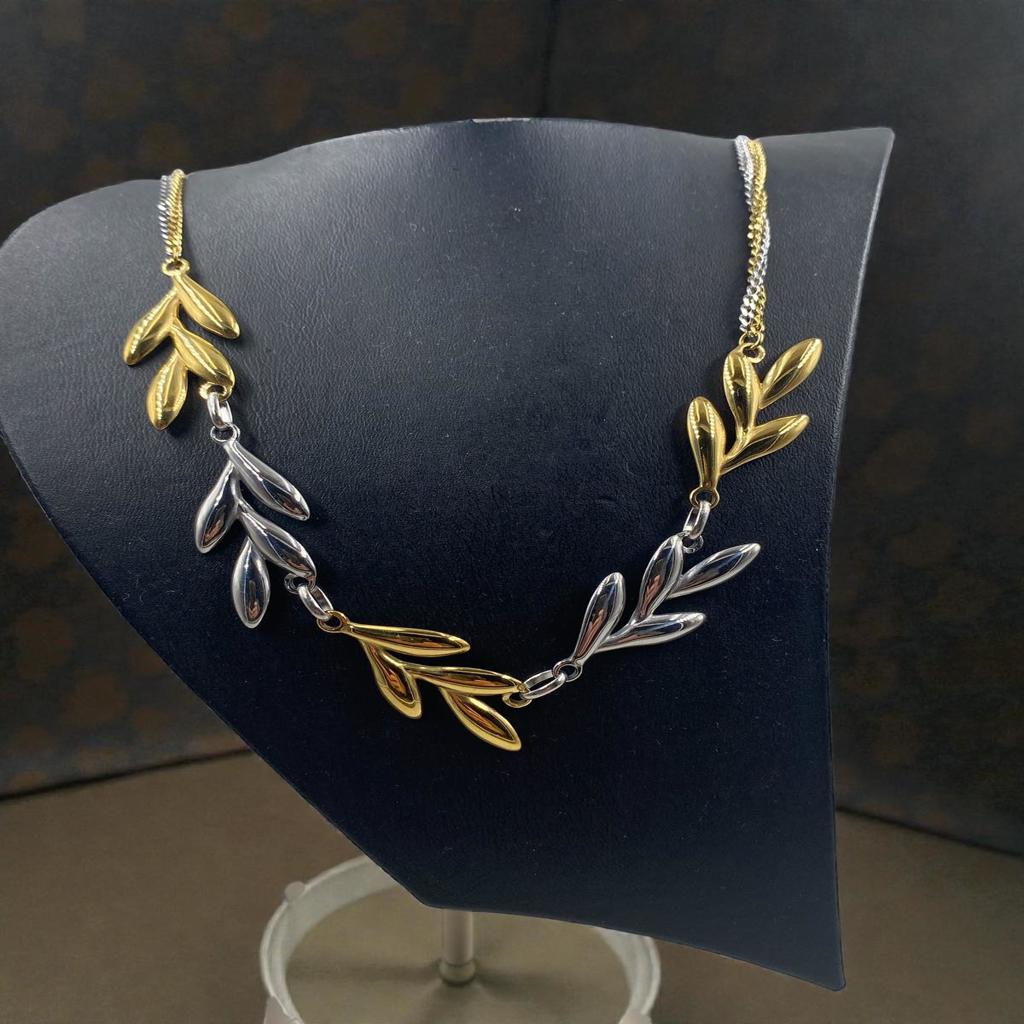 Δίχρωμο, ατσάλινο κολιέ κλαδιά με φύλλα