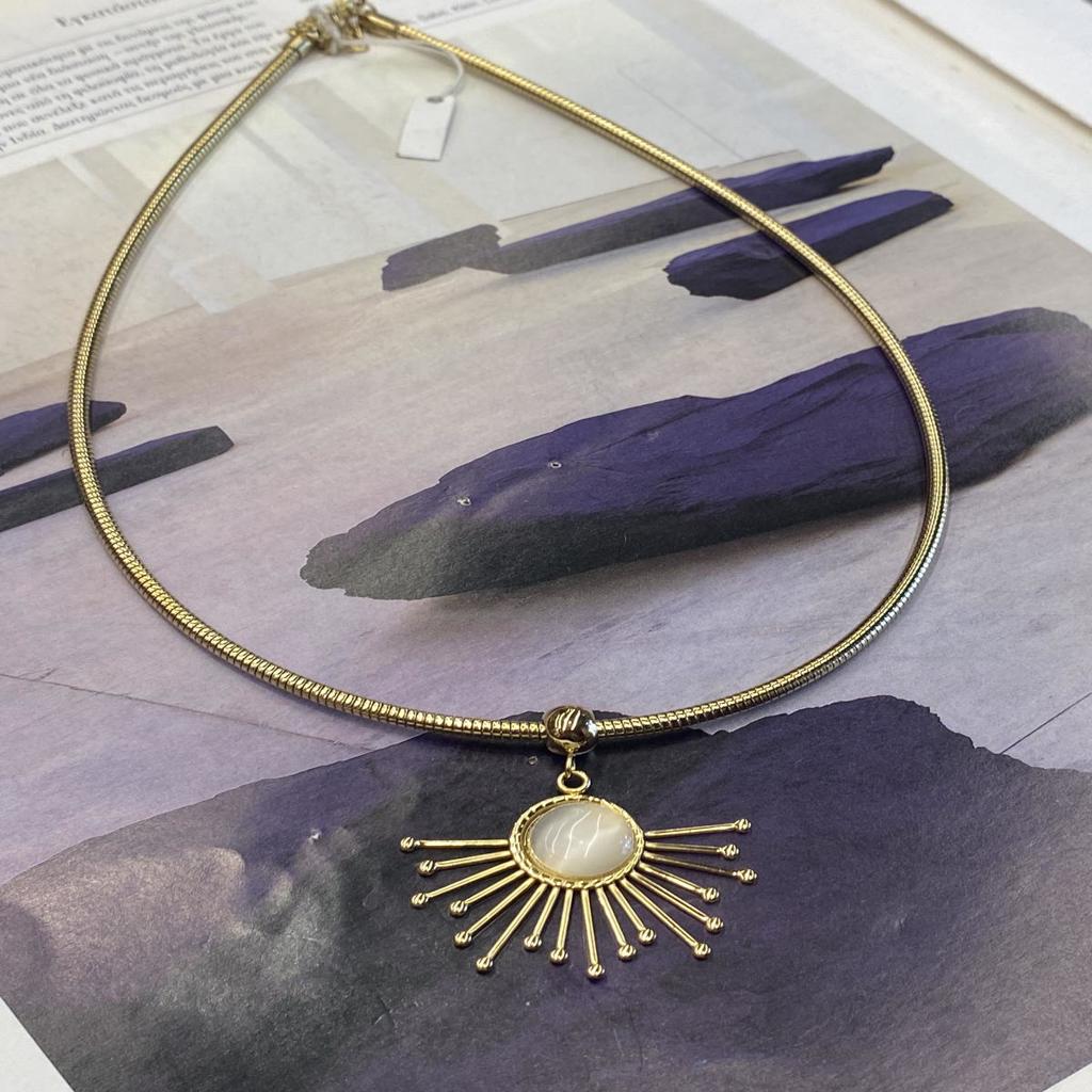 Κολιέ ατσάλινο, φεγγαρόπετρα με ακτίνες