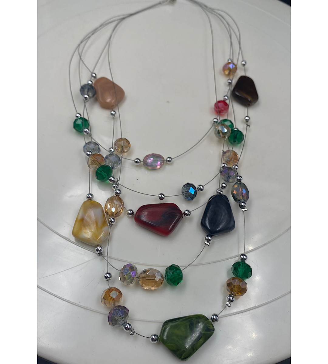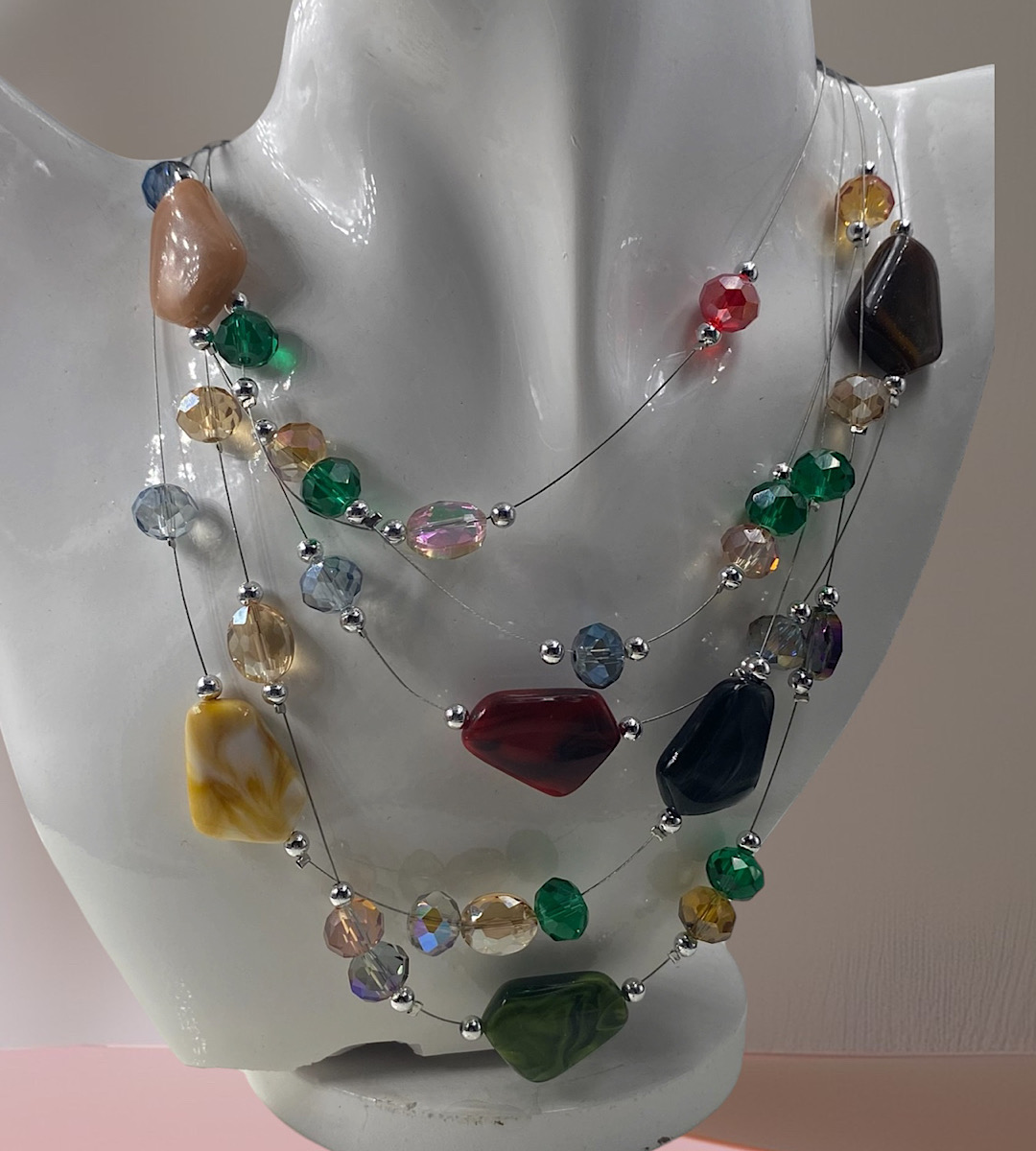Κολιέ με χάντρες σε διάφορα χρώματα περασμένες σε πέντε σειρές ντίζα