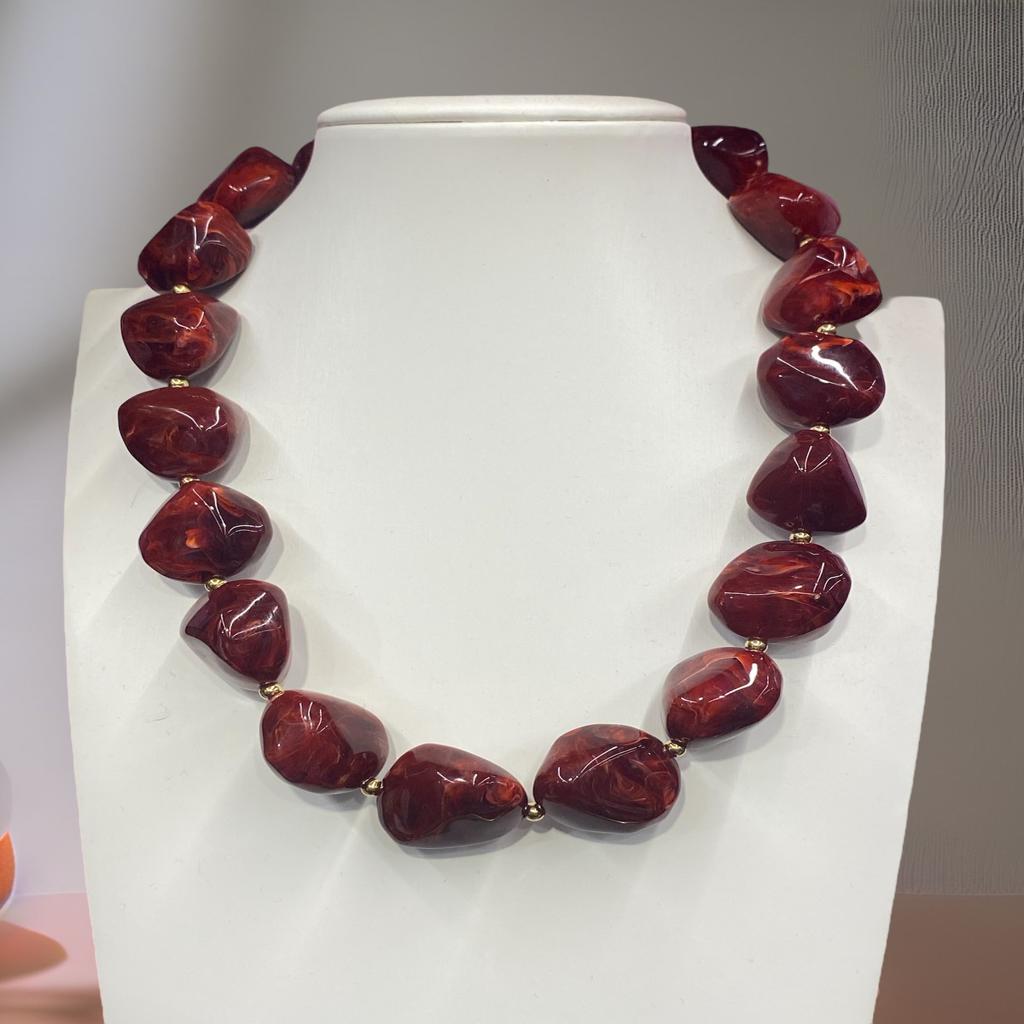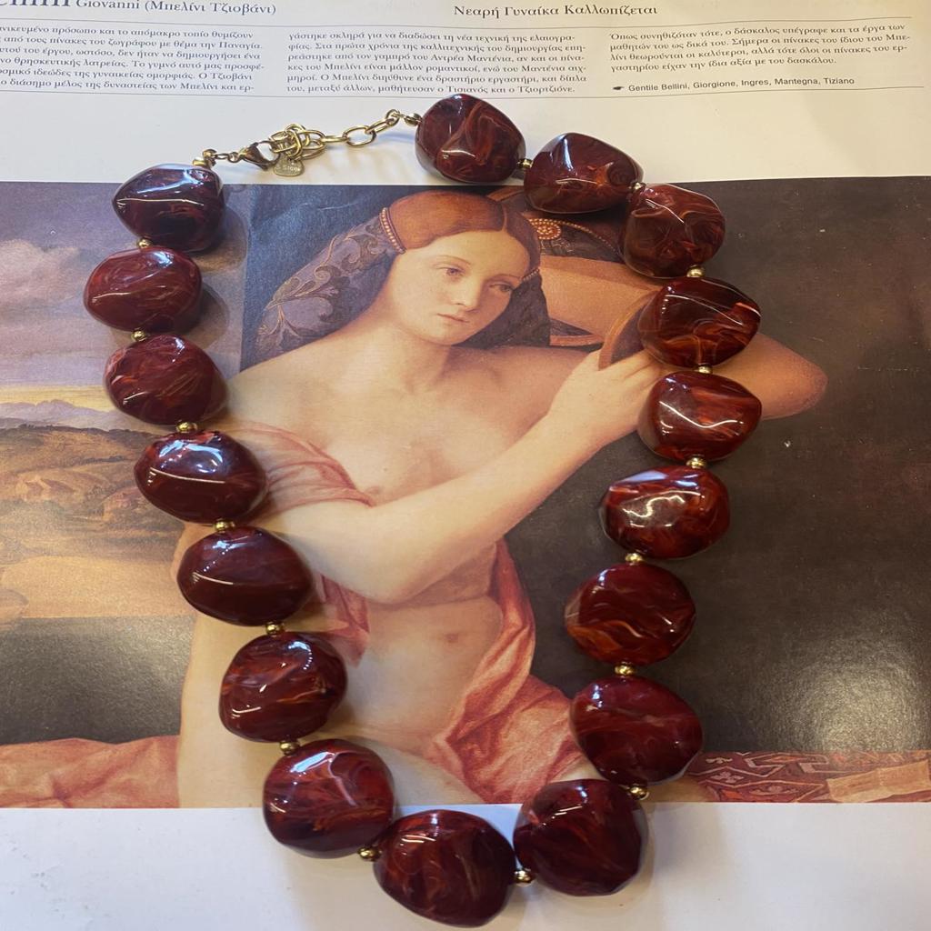 Κολιέ γυναικείο, με μεγάλες, μπορντό βυσσινί πέτρες