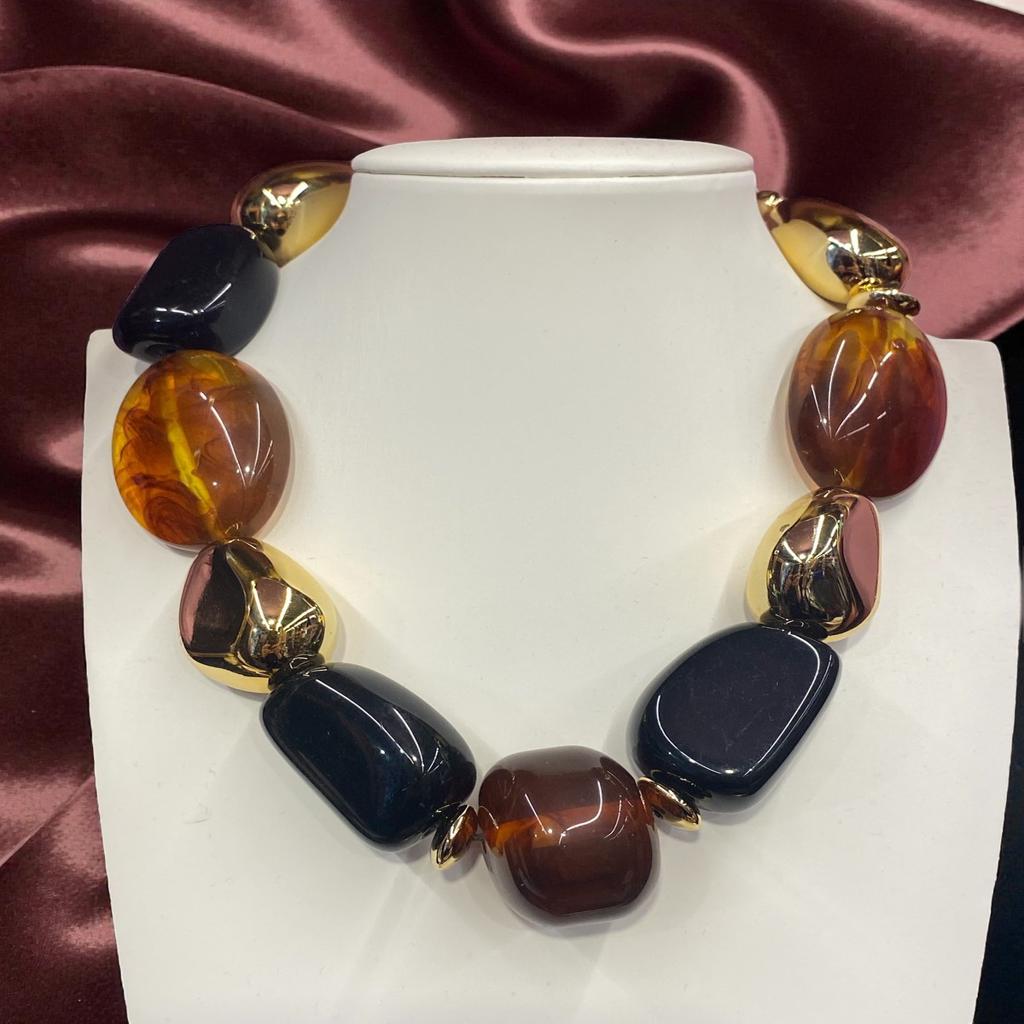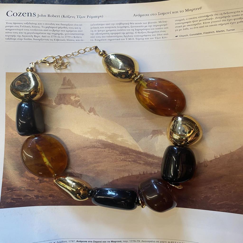 Κολιέ γυναικείο με μεγάλες καφέ μαύρες πέτρες