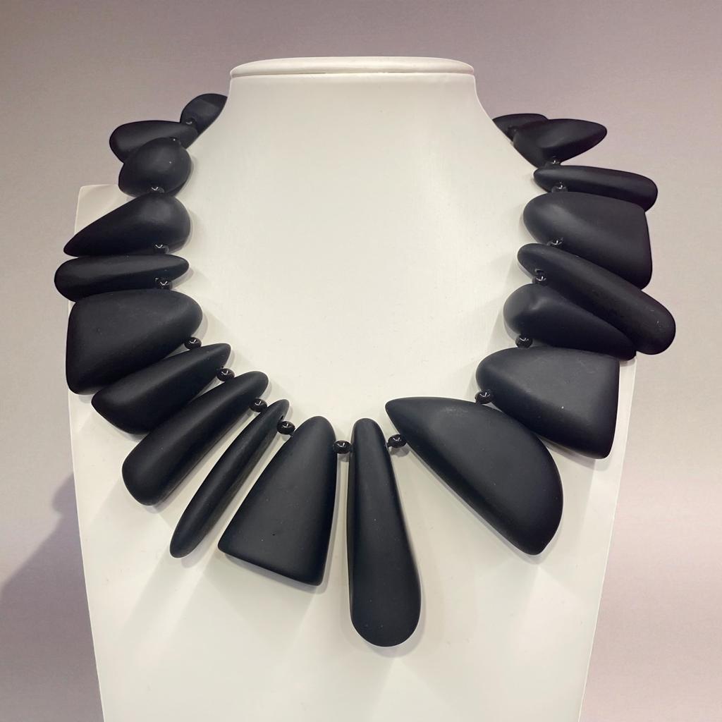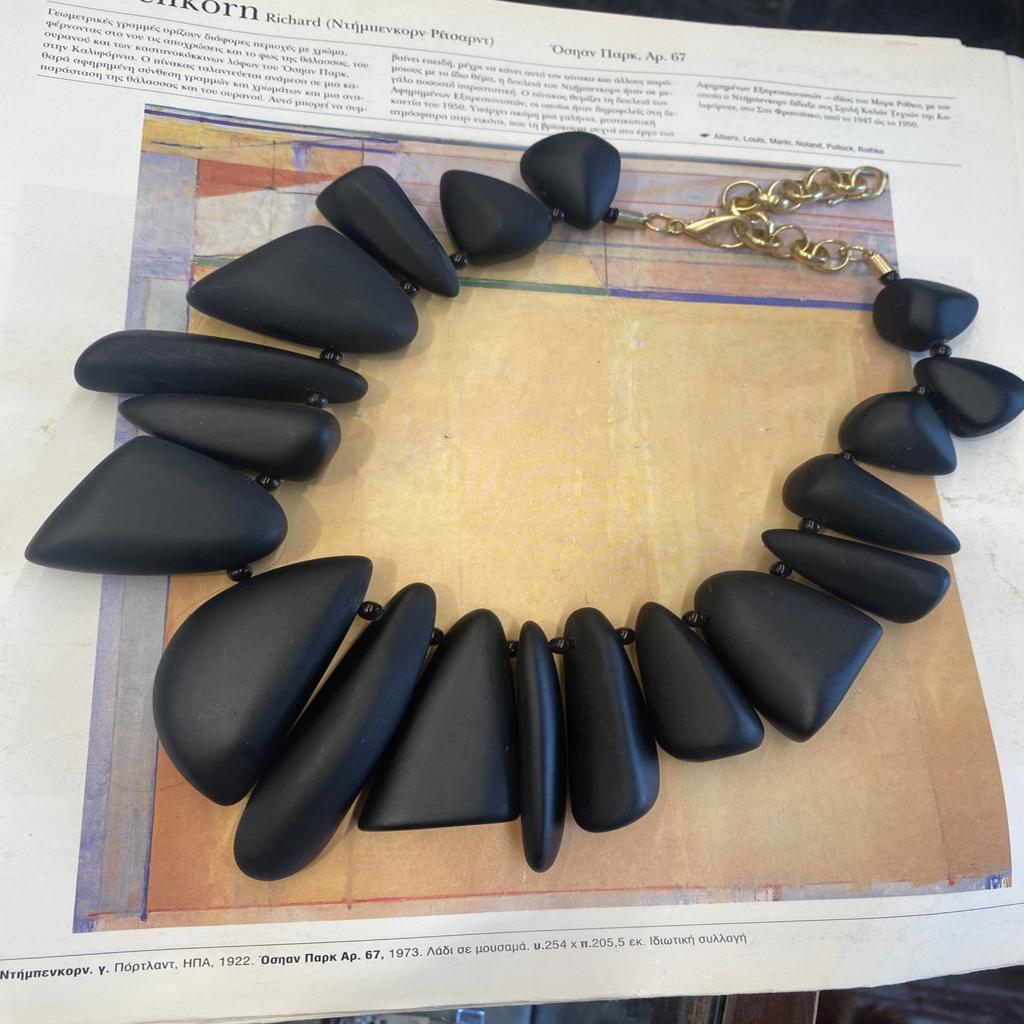 Κολιέ γυναικείο, με μαύρες ακανόνιστες πέτρες