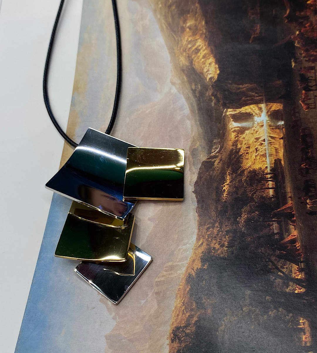 Δίχρωμο μακρύ κολιέ σε ρόμβους με ρυθμιζόμενο κορδόνι
