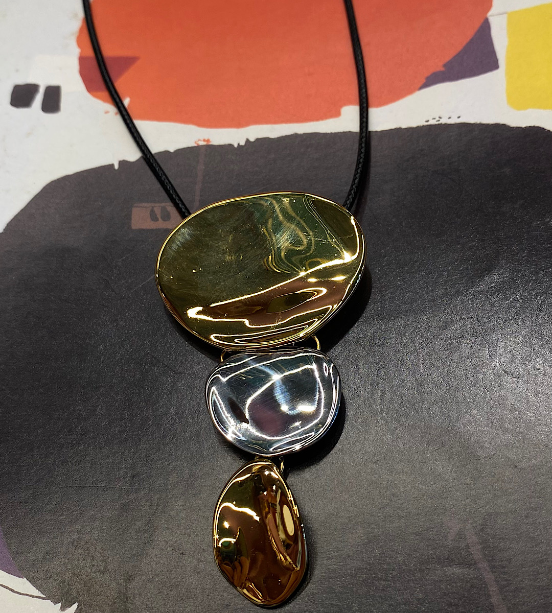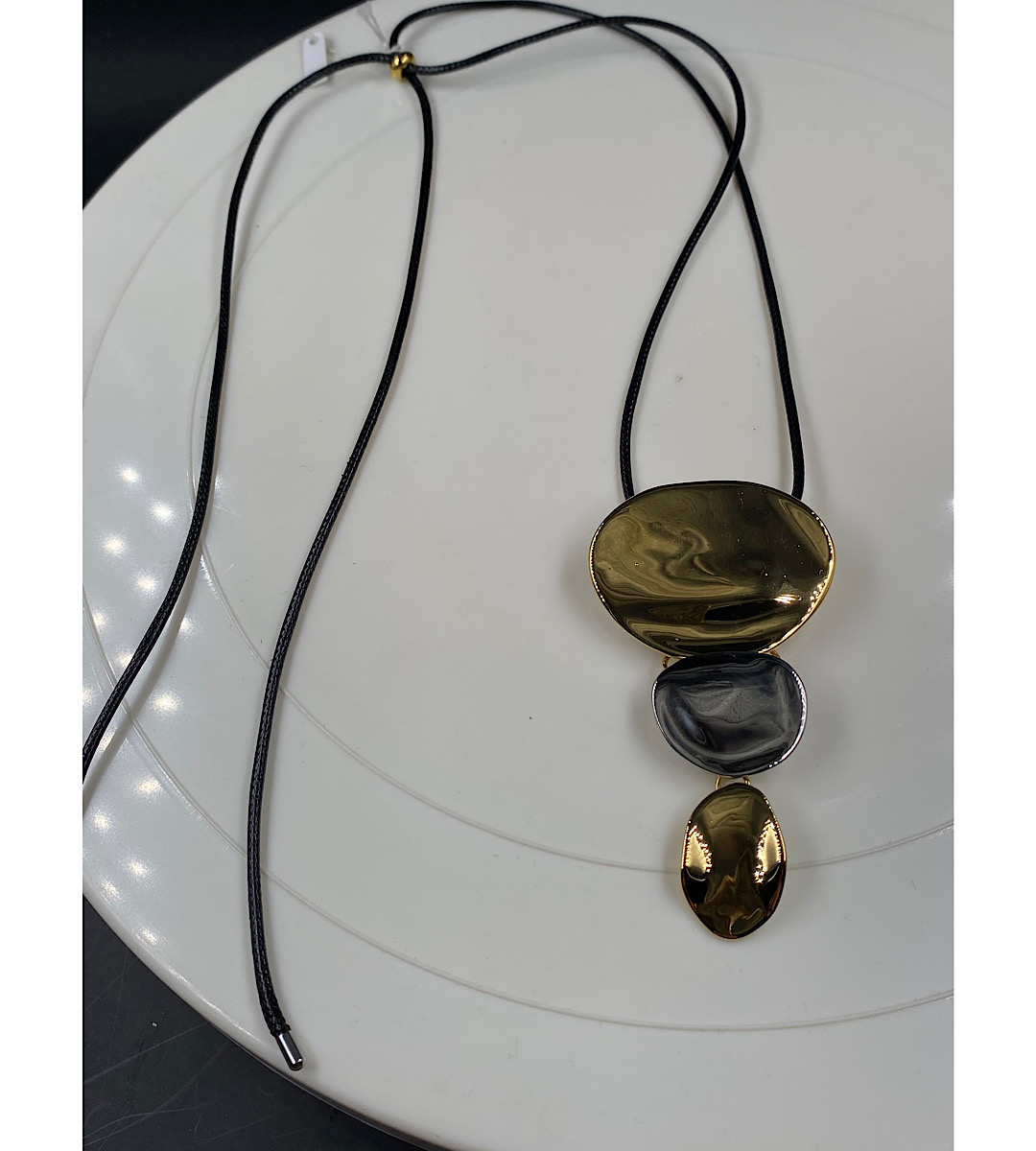 Δίχρωμο ατσάλινο κολιέ μακρύ με ρυθμιζόμενο κορδόνι