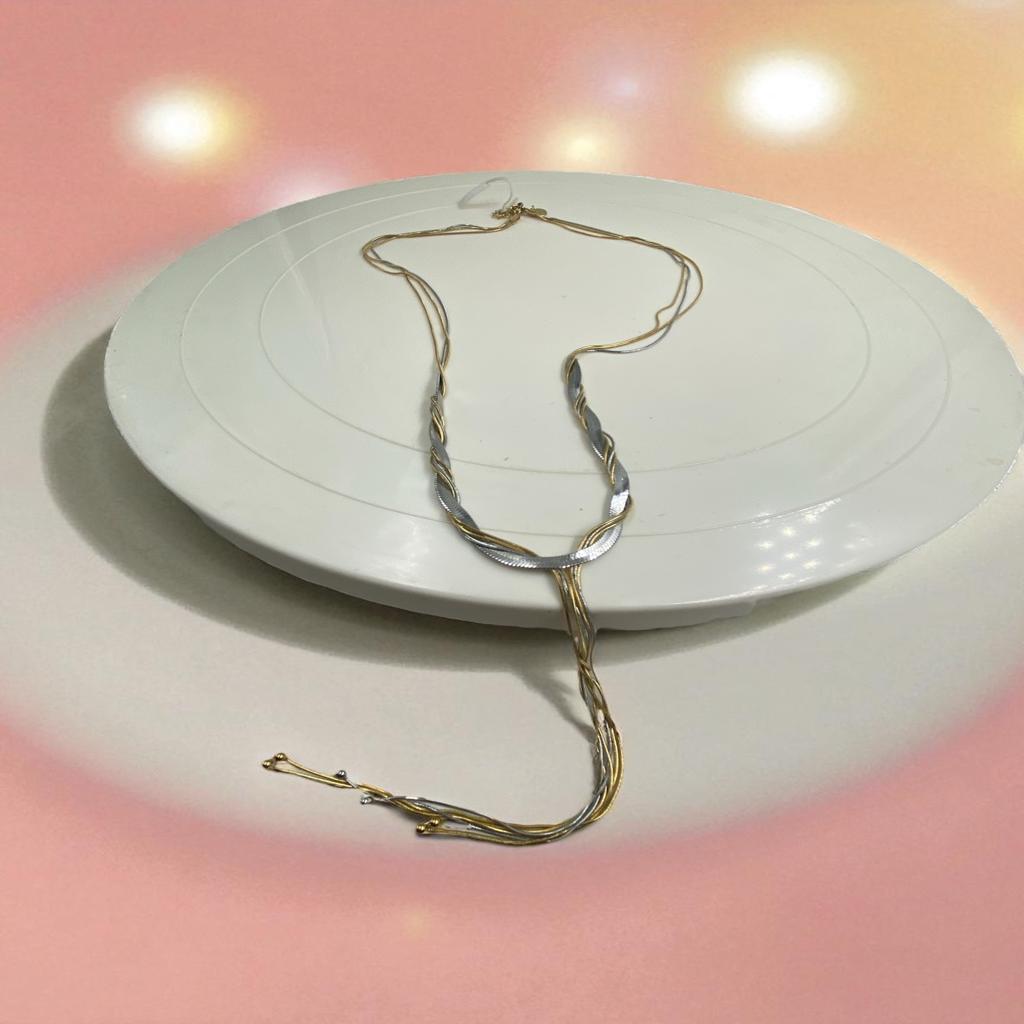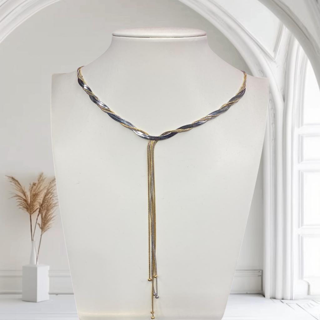 Μακρύ, δίχρωμο, ατσάλινο, γυναικείο κολιέ Πλεξούδα και αλυσίδες