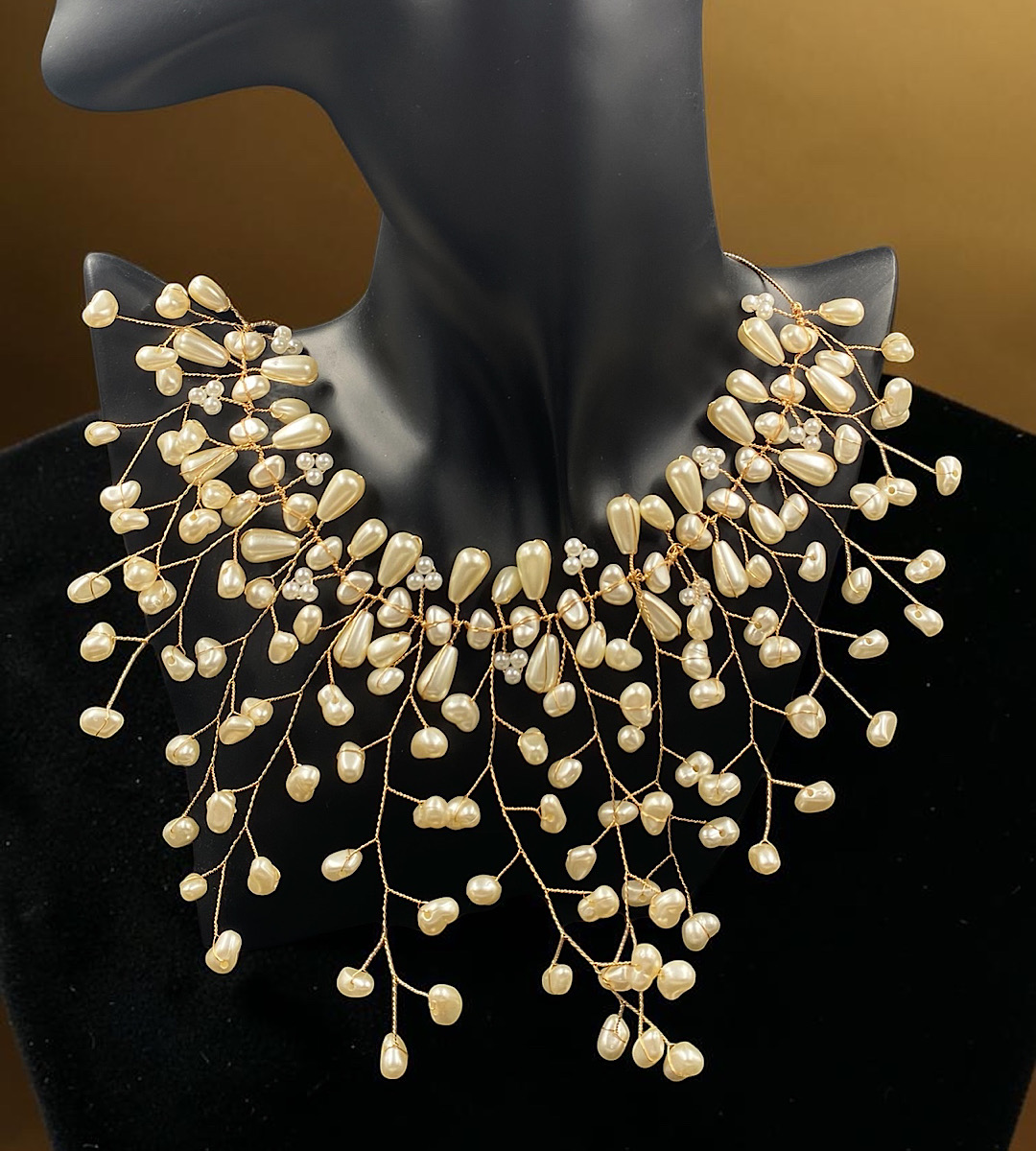 Κολιέ βροχή με πέρλες σε ατσαλόσυρμα