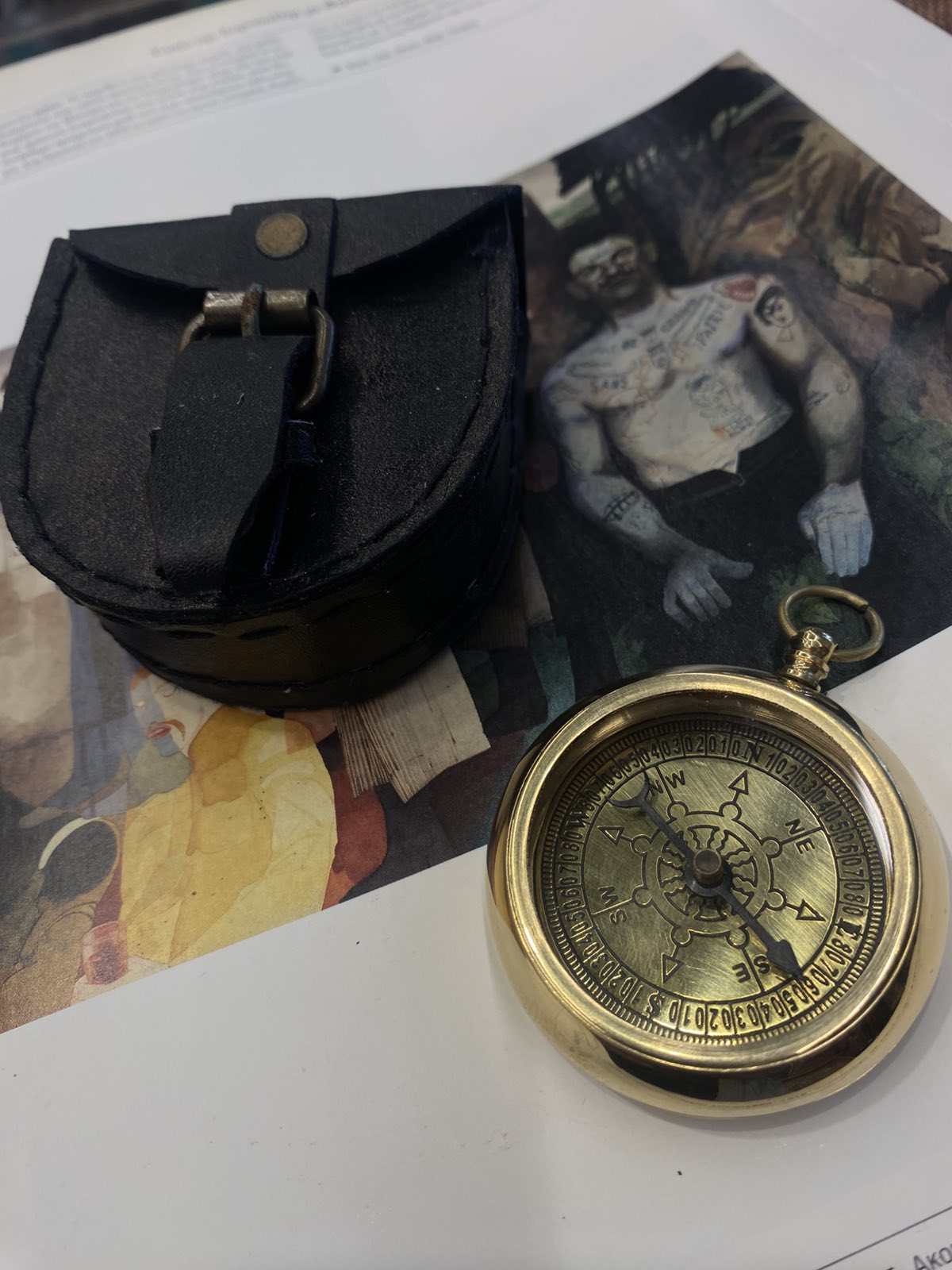 Μεταλλική πυξίδα Φ 5 εκ. σε δερμάτινη θήκη