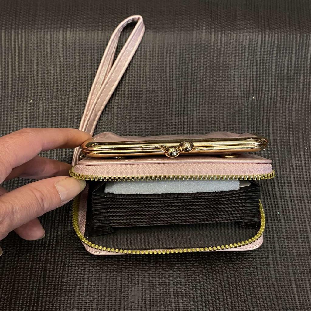 Μικρό ροζ πορτοφόλι καρτοθήκη με αποσπόμενο πορτοφολάκι και χερουλάκι για τον καρπό