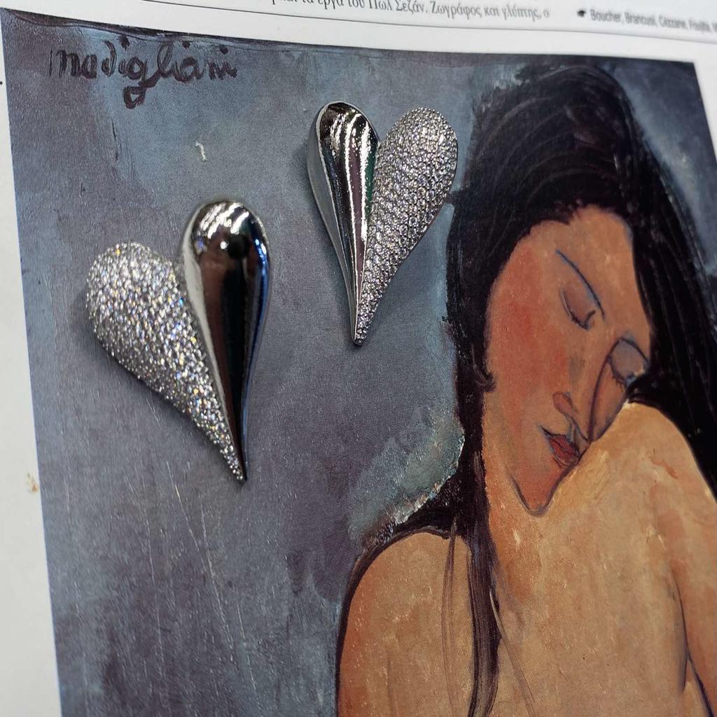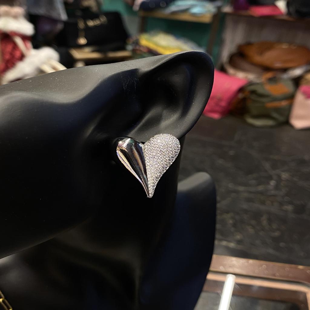Καρφωτά σκουλαρίκια καρδιές με στρας στη μισή επιφάνεια