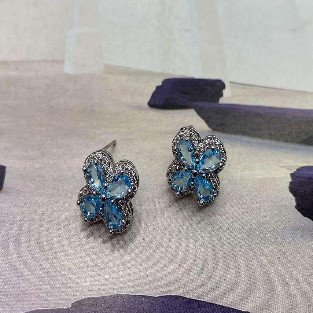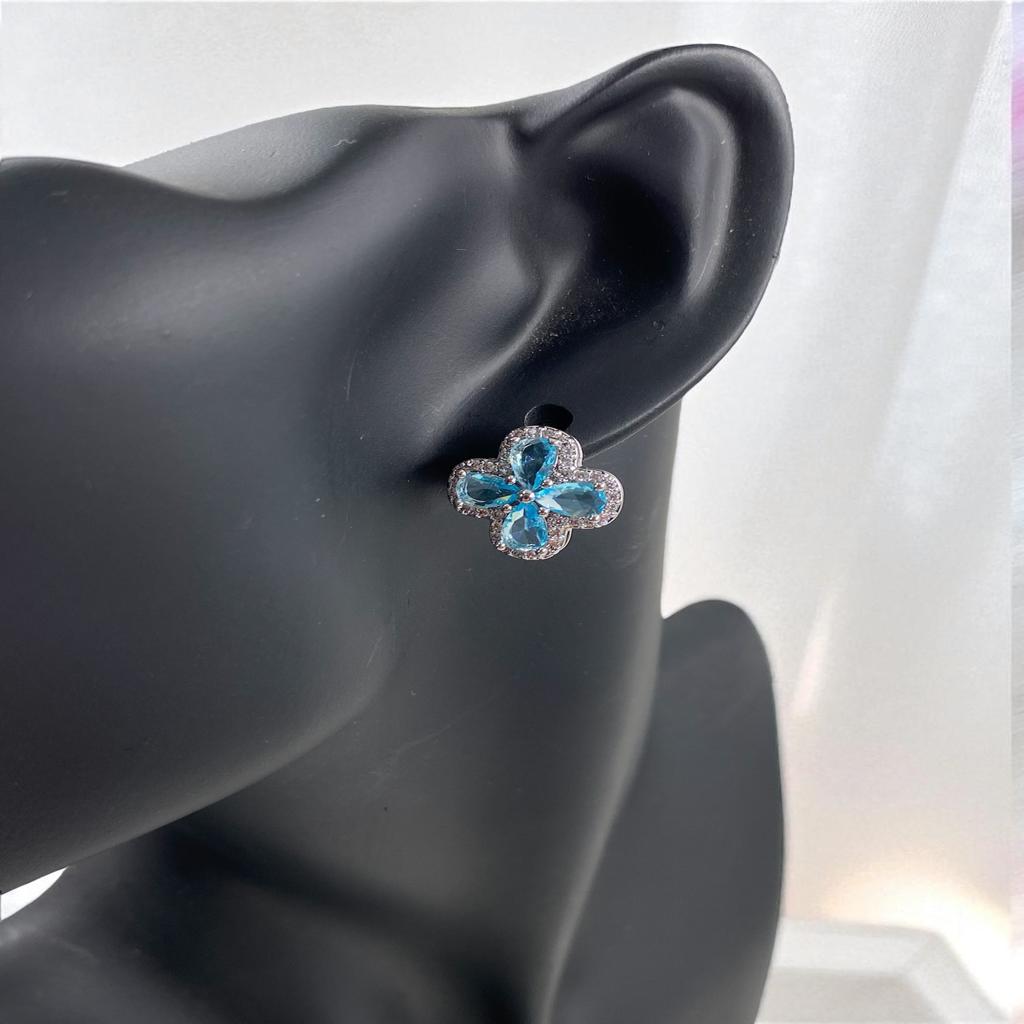 Σκουλαρίκια ασημένια, καρφωτά, με γαλάζια ζιργκόν