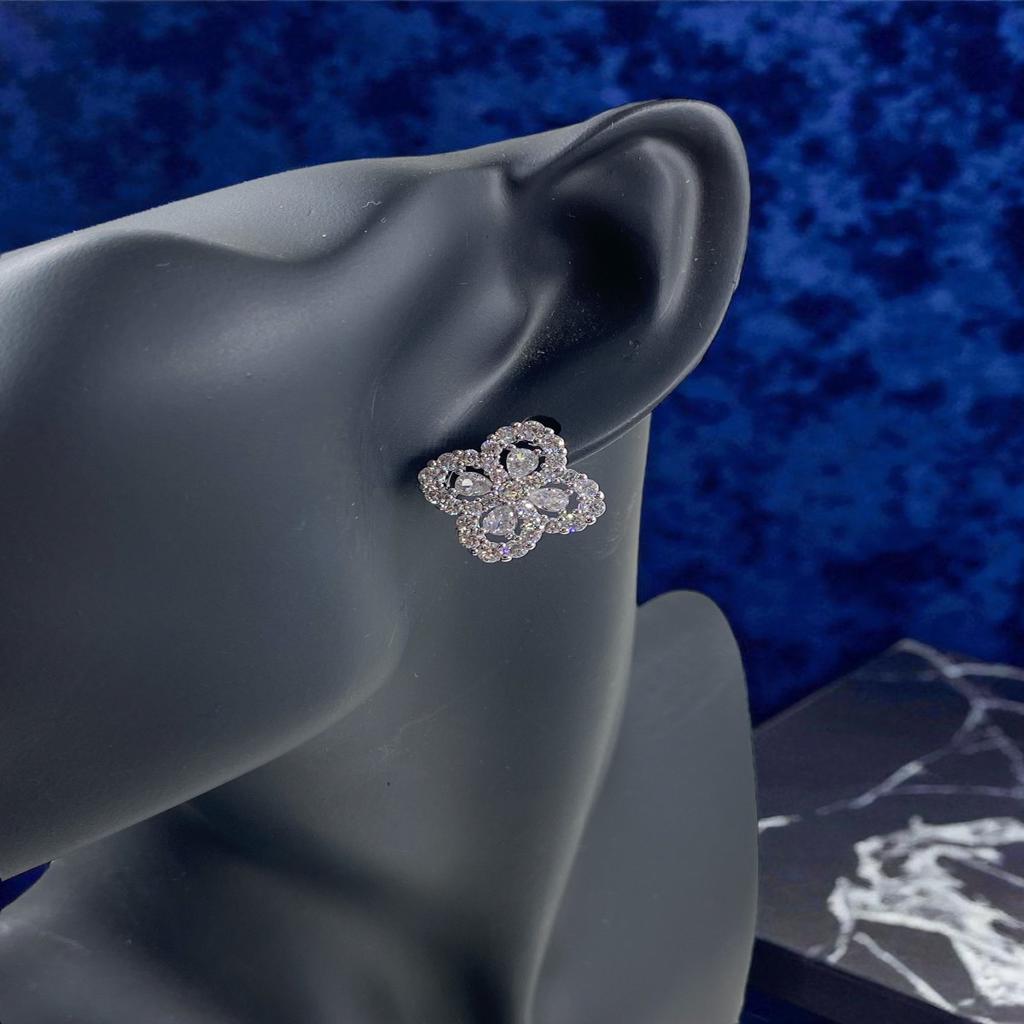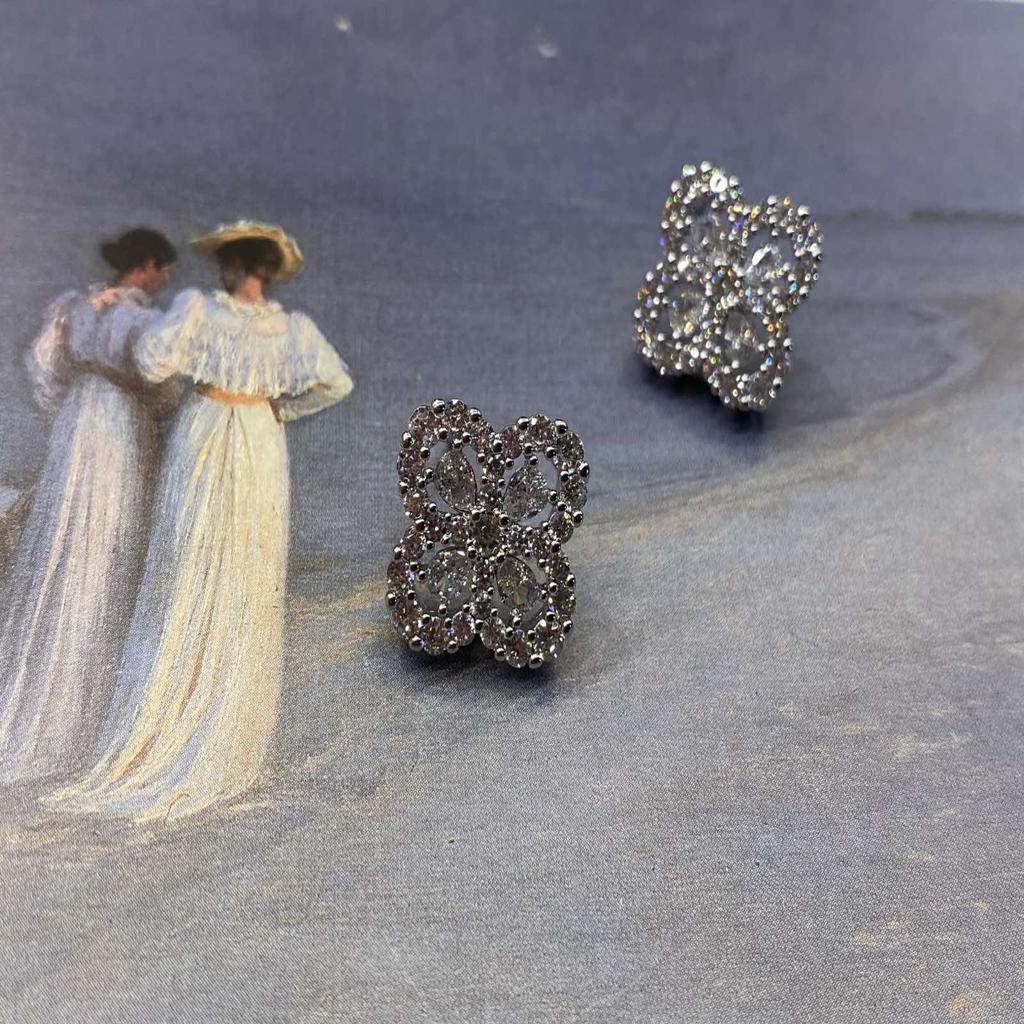 Σκουλαρίκια ασημένια, καρφωτά, τύπου Van Cleef, με λευκά ζιργκόν