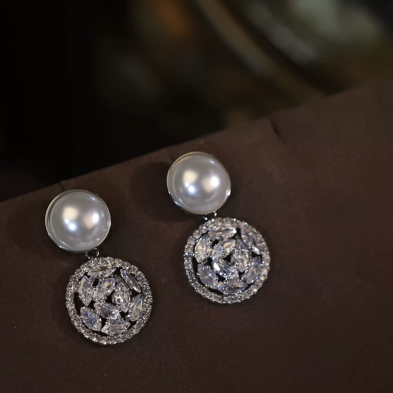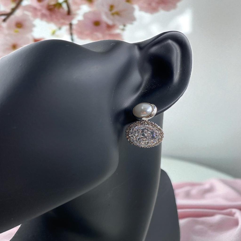 Σκουλαρίκια ασημένια με πέρλα στο πάνω μέρος και κύκλο με ζιργκόν στο κάτω