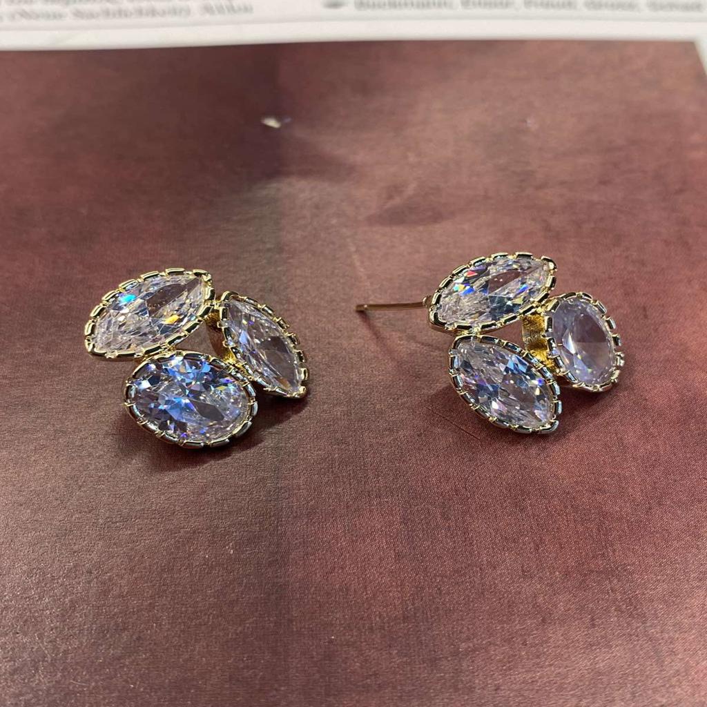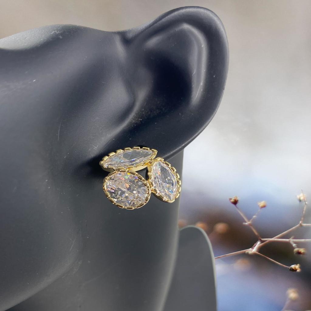 Ασημένια καρφωτά σκουλαρίκια με 3 λευκά κρύσταλλα