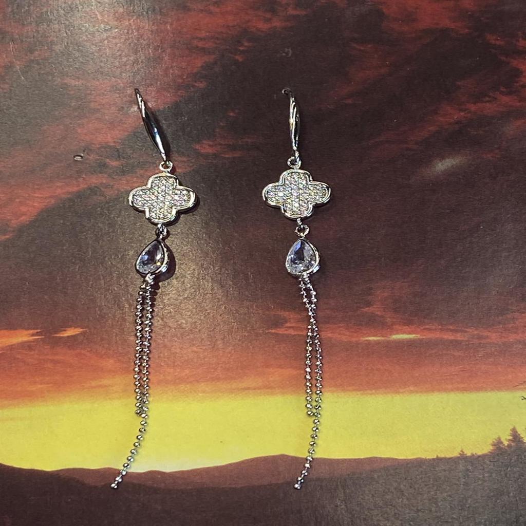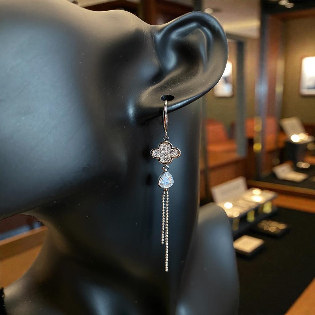 Περαστά ασημένια σκουλαρίκια με σταυρουδάκι Van Cleef με στρας