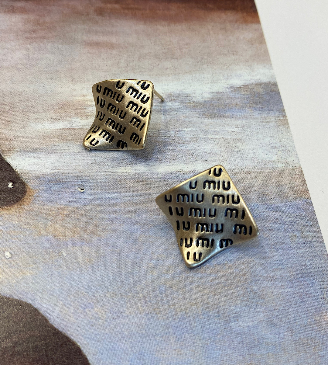 Καρφωτά ασημένια σκουλαρίκια σε ρόμβο miu