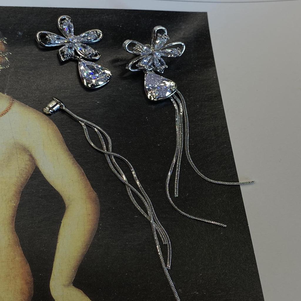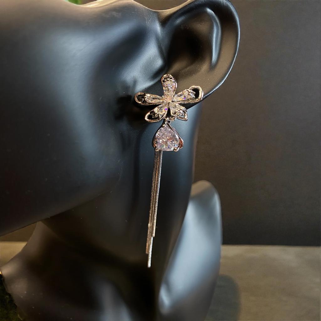 Σκουλαρίκια jacket, λουλούδι με δάκρυ και μακριές αλυσίδες στο κούμπωμα