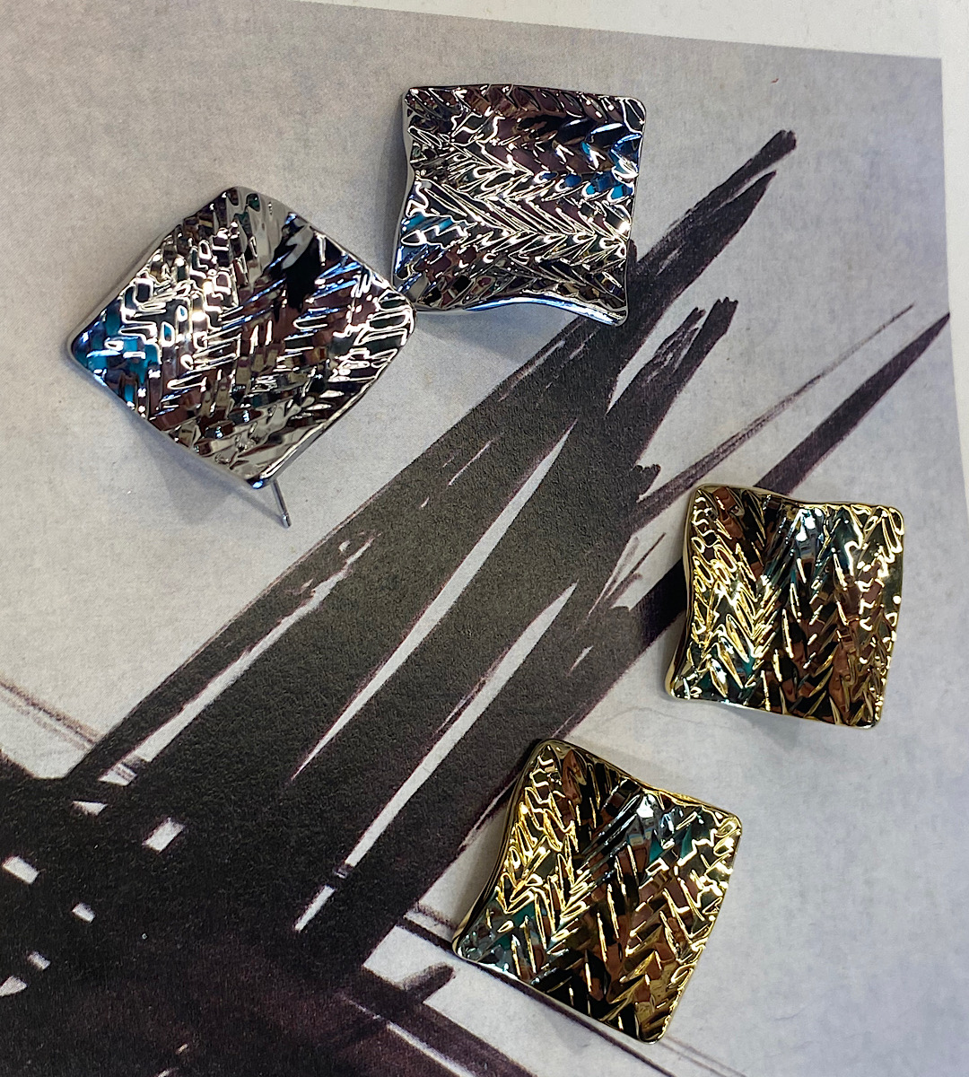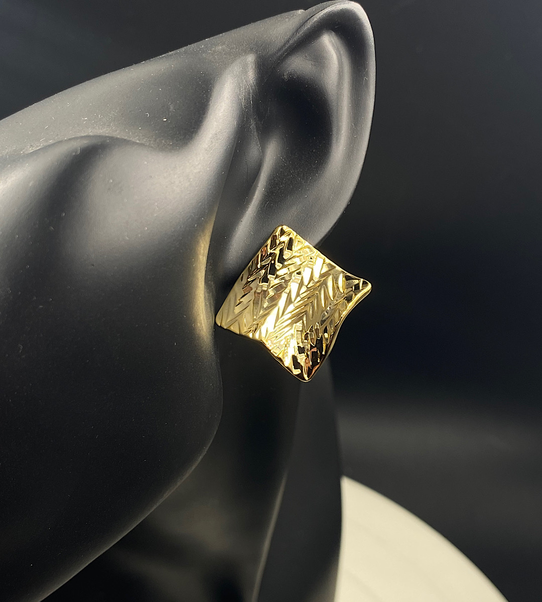 Καρφωτά σκουλαρίκια σε σχήμα ρόμβου με ανάγλυφη κυματιστή επιφάνεια
