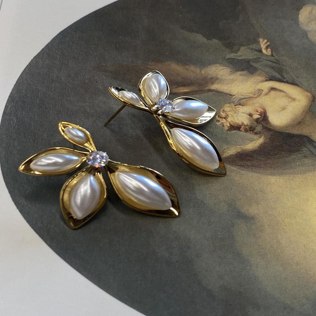 Καρφωτά σκουλαρίκια, μισό λουλούδι με πέρλα