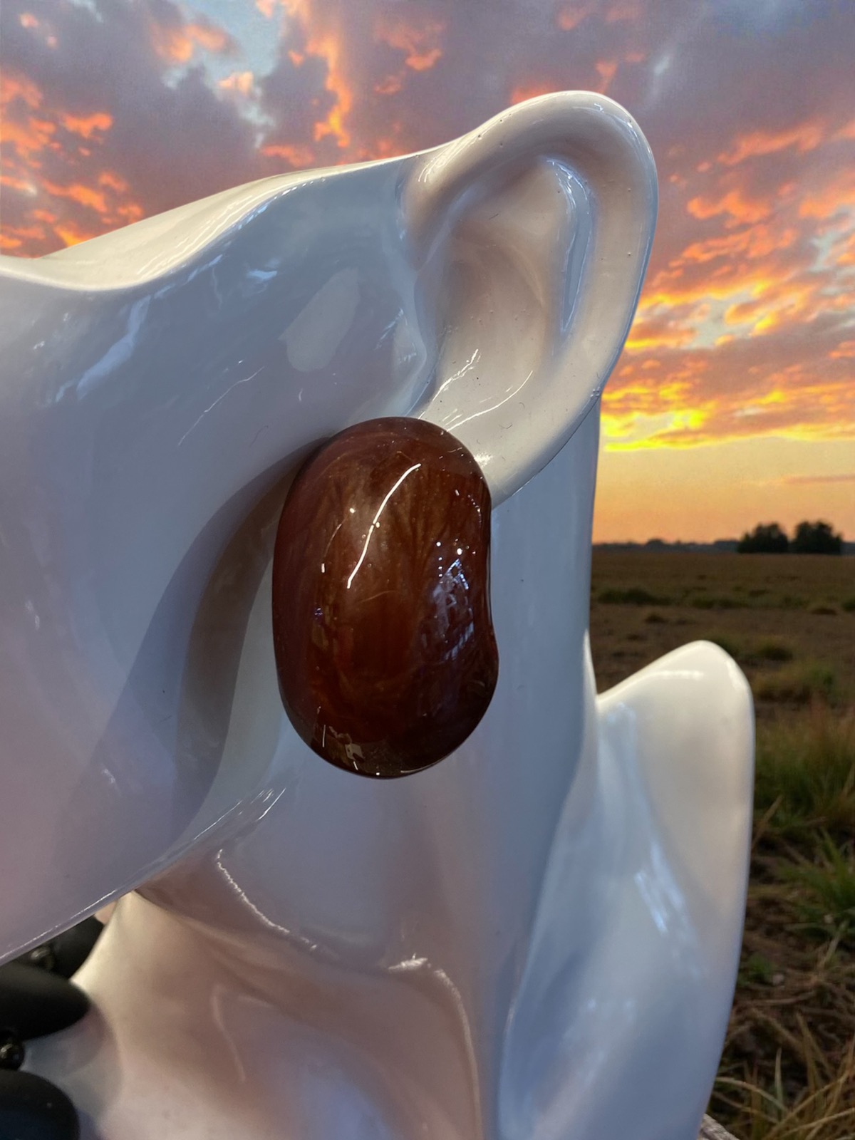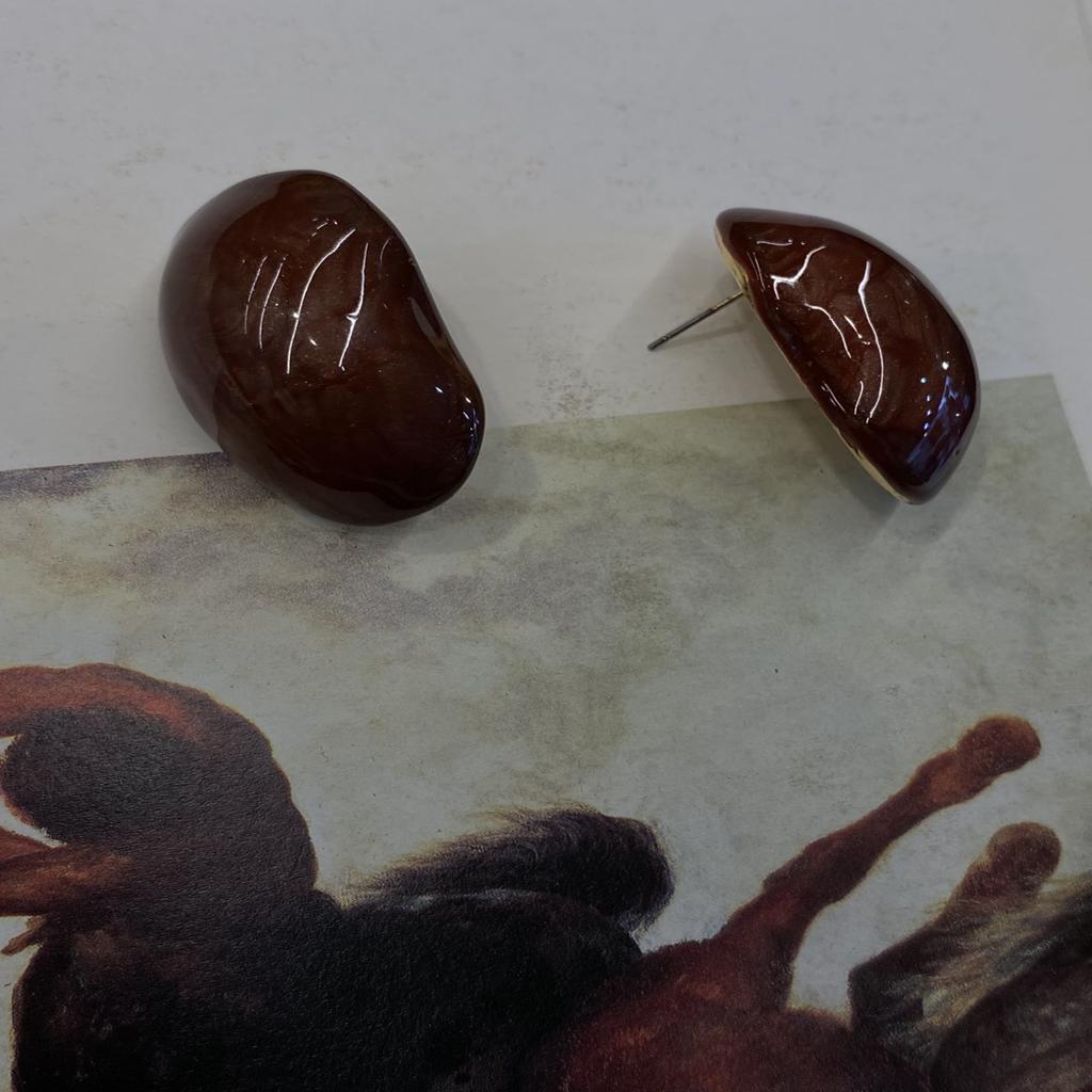 Σκουλαρίκια ατσάλινα, καρφωτά, κουρμπαριστά, με καφέ σμάλτο