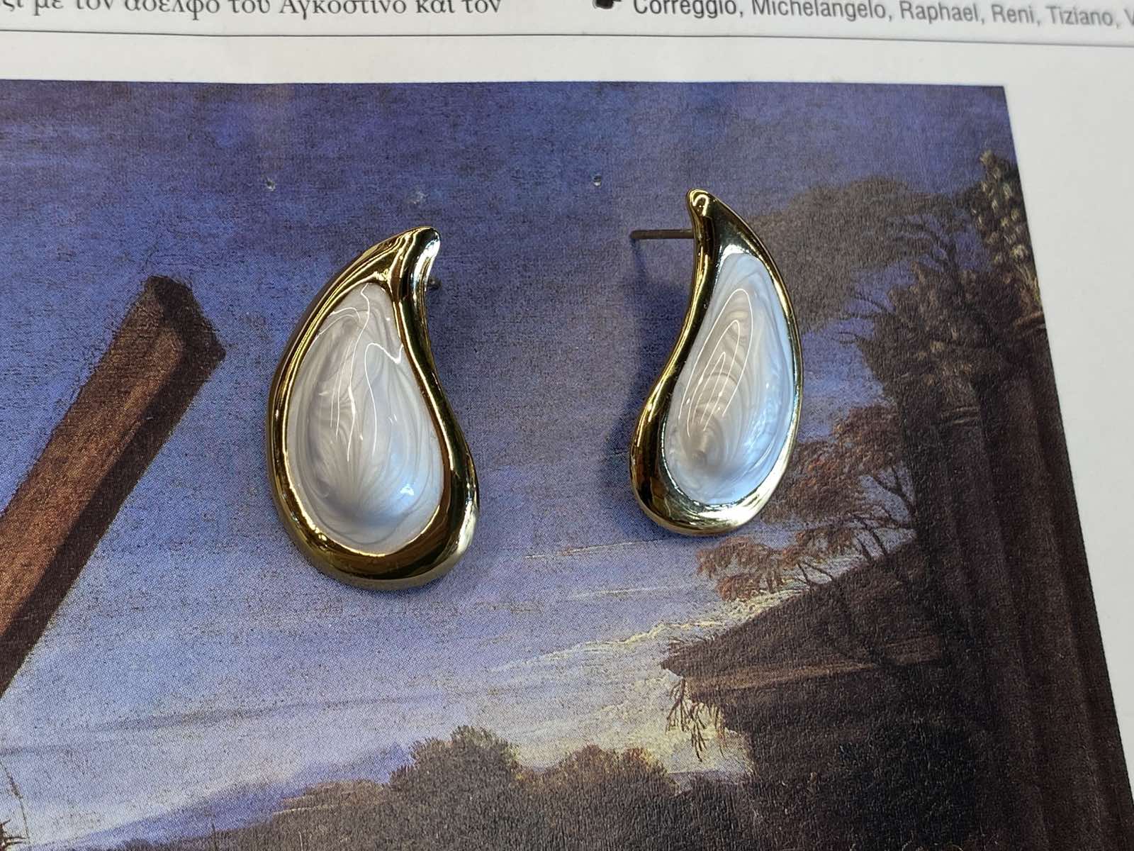 Καρφωτά ατσάλινα σκουλαρίκια με λευκό σμάλτο