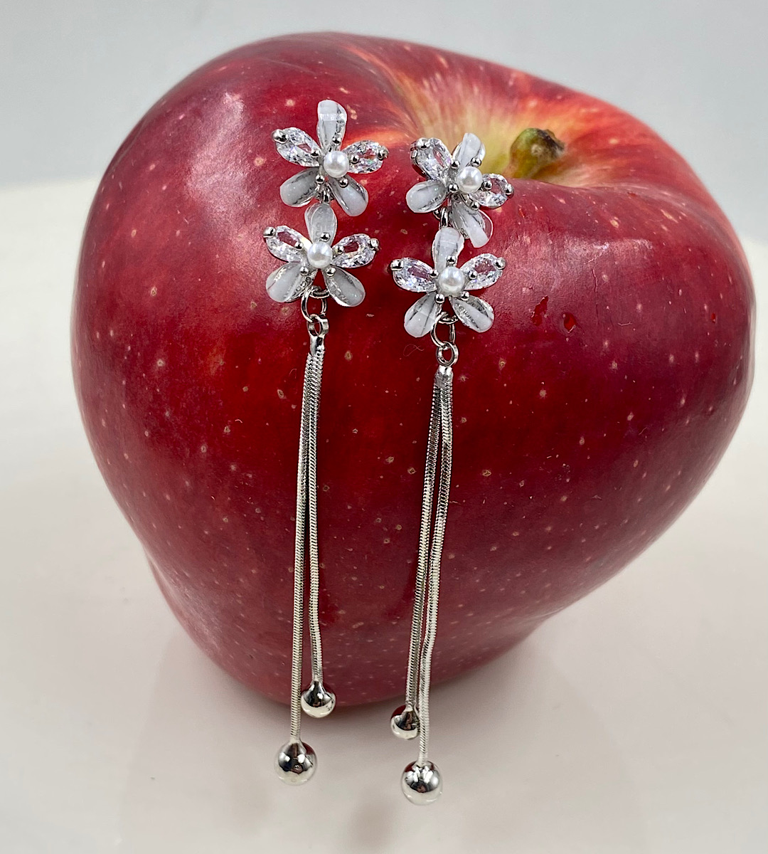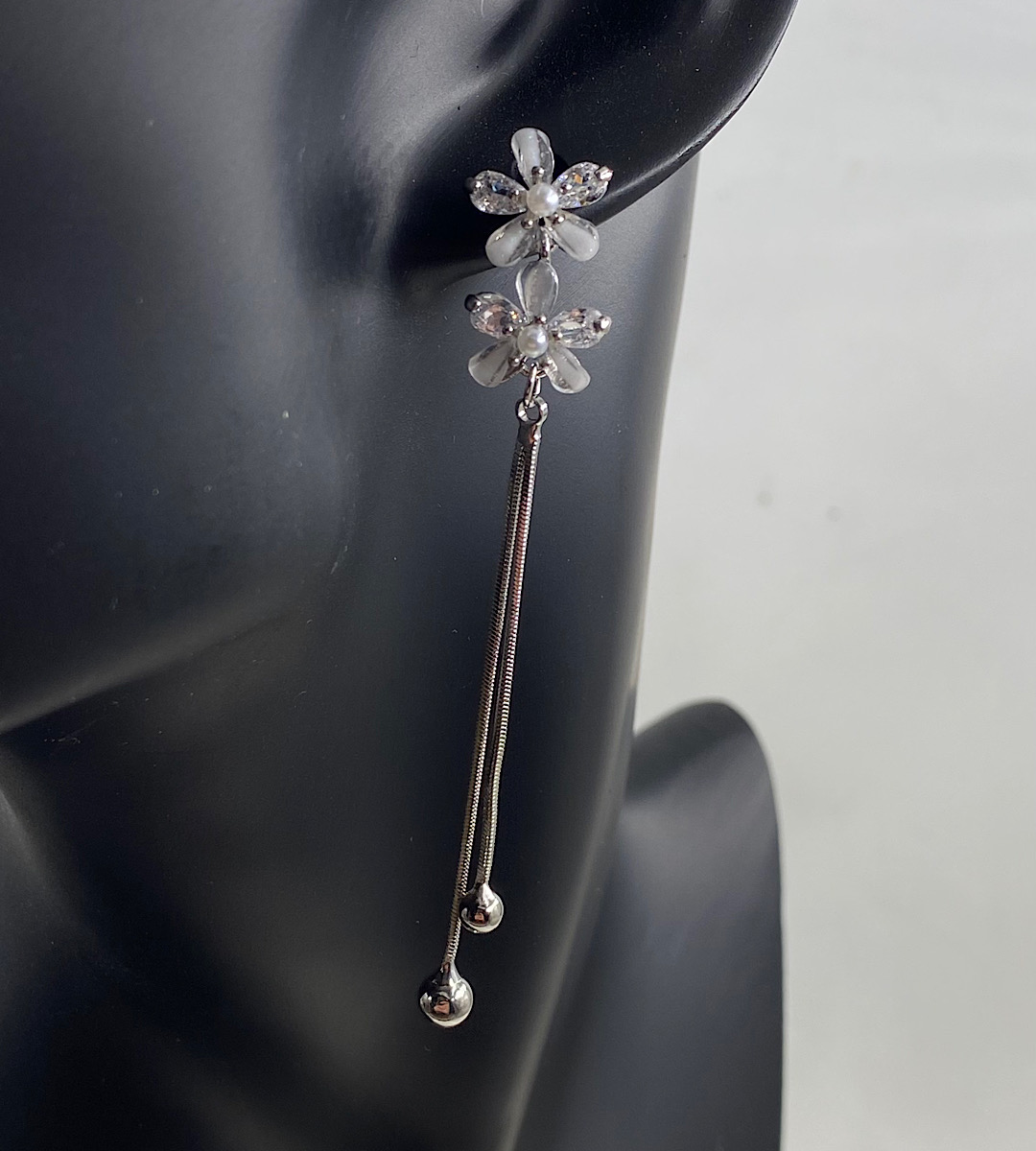 Κρεμαστά ατσάλινα σκουλαρίκια λουλουδάκια με στρας και κρεμαστές αλυσίδες