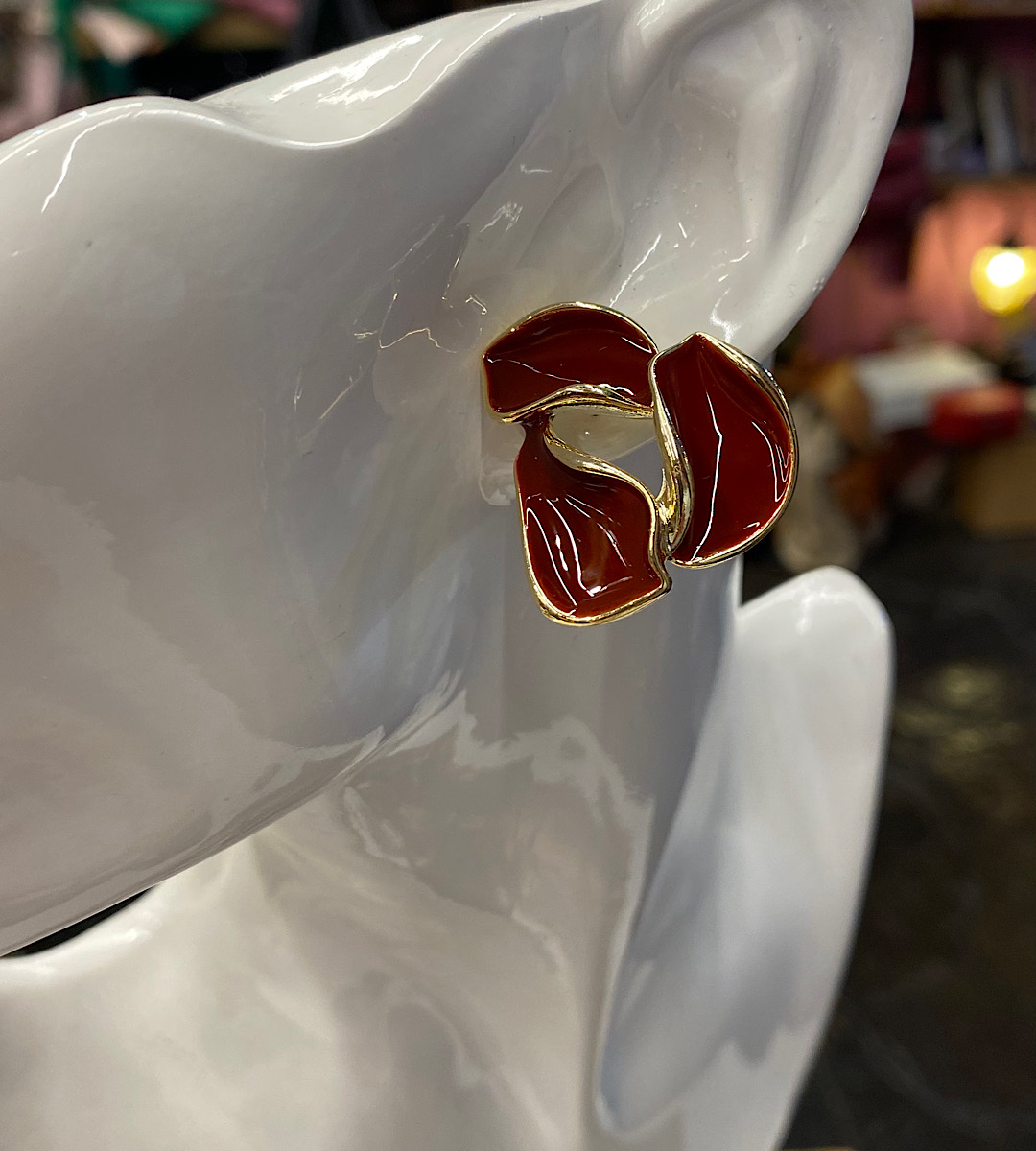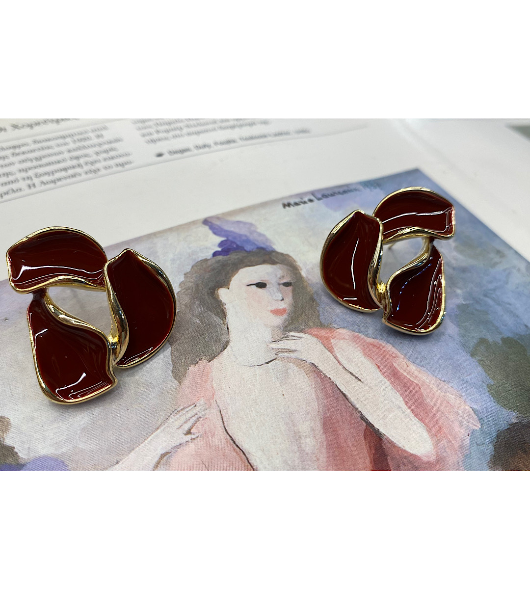 Ατσάλινα καρφωτά σκουλαρίκια με βυσσινί σμάλτο