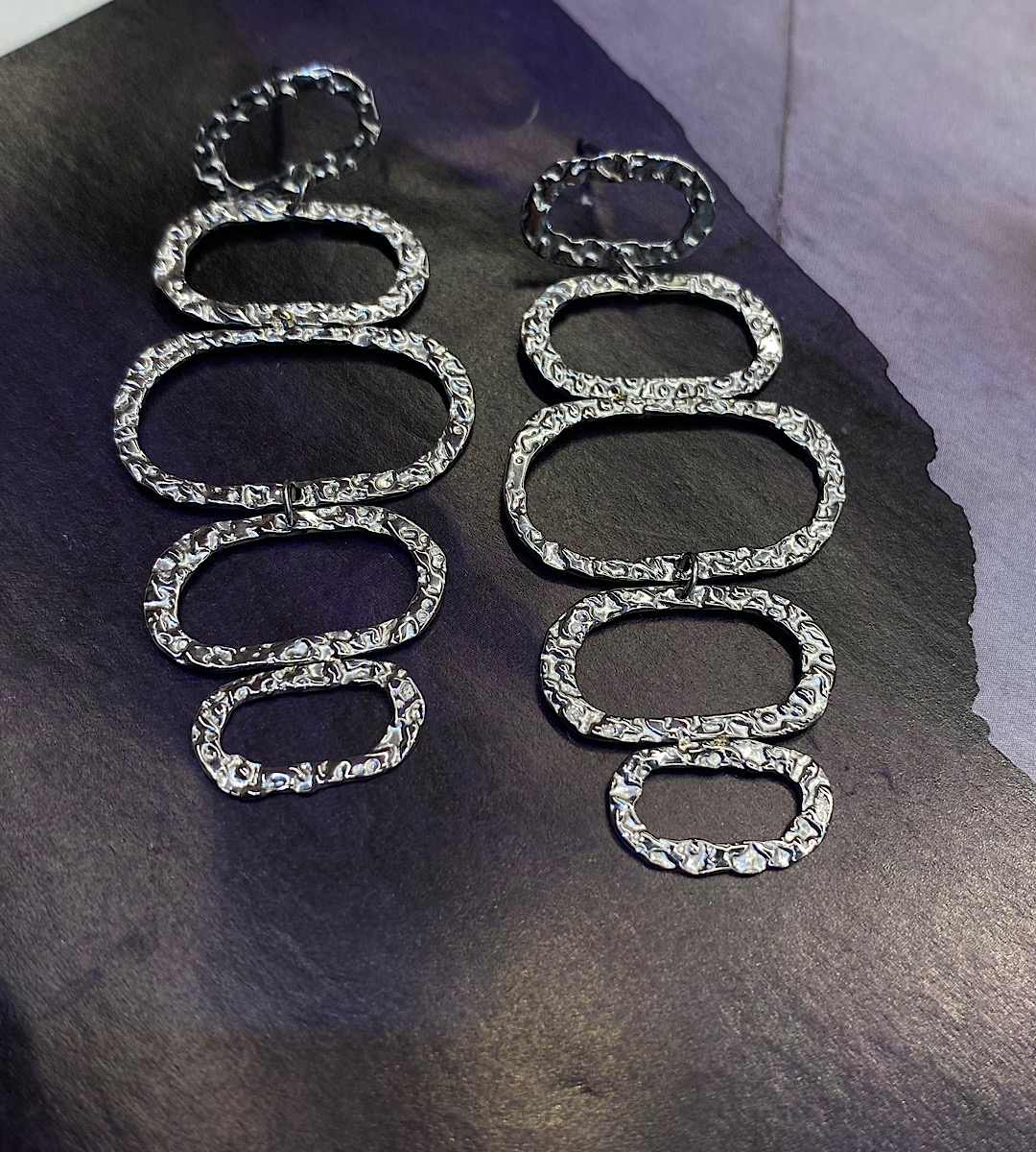 Κρεμαστά σκουλαρίκια με οβάλ σφυρηλατημένους κρίκους