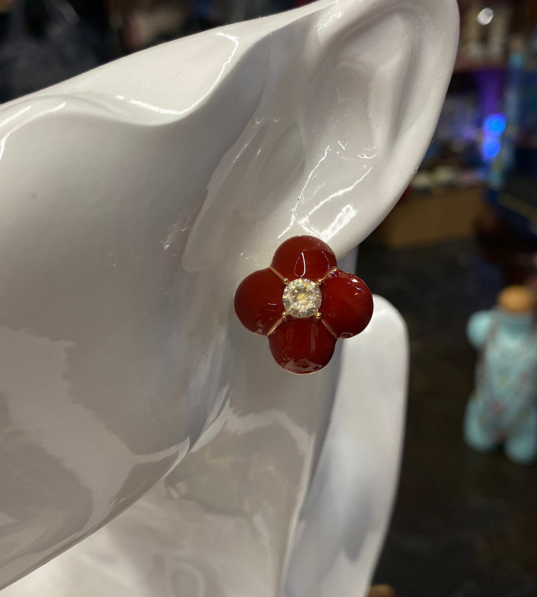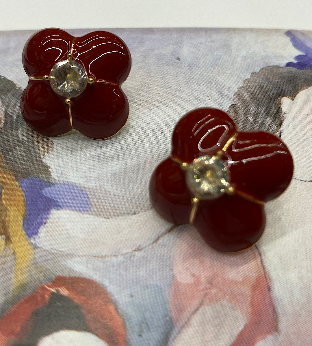 Καρφωτά σκουλαρίκια λουλούδια με βυσσινί σμάλτο
