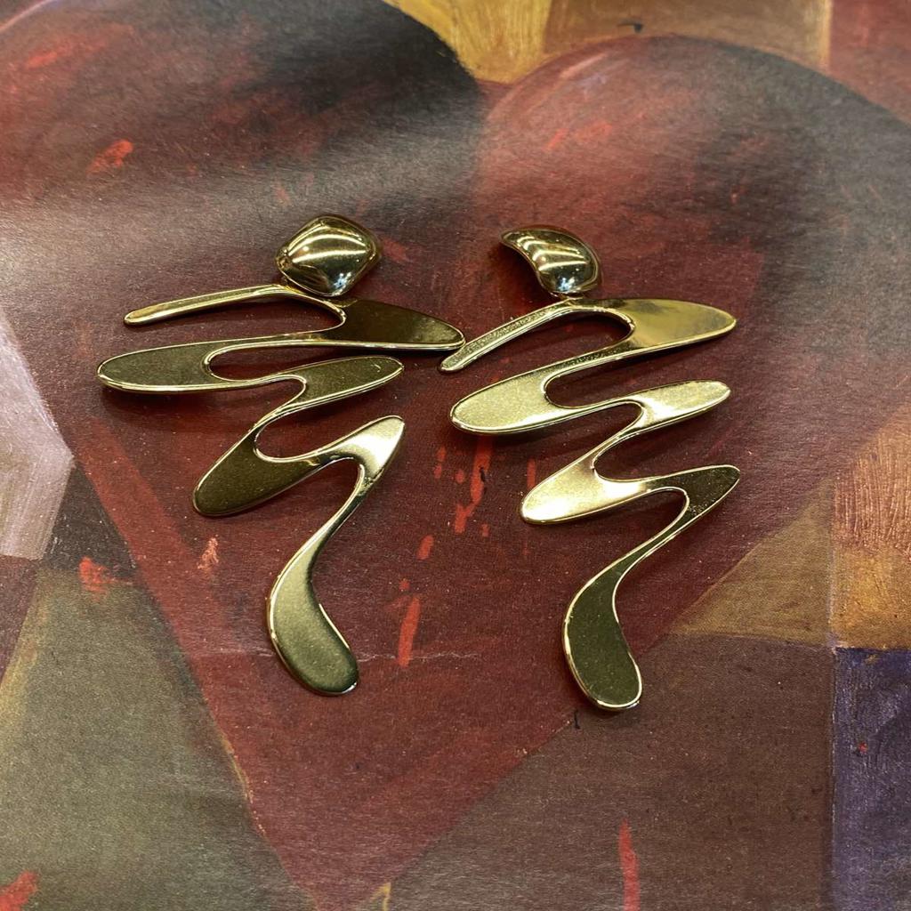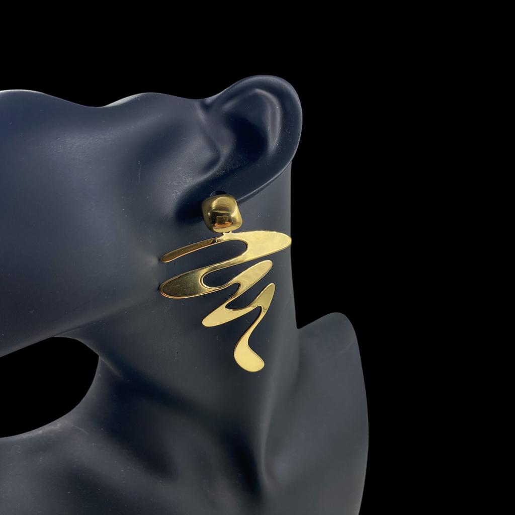 Σκουλαρίκια ατσάλινα, κρεμαστά, σε απόχρωση χρυσού, ζικ-ζακ