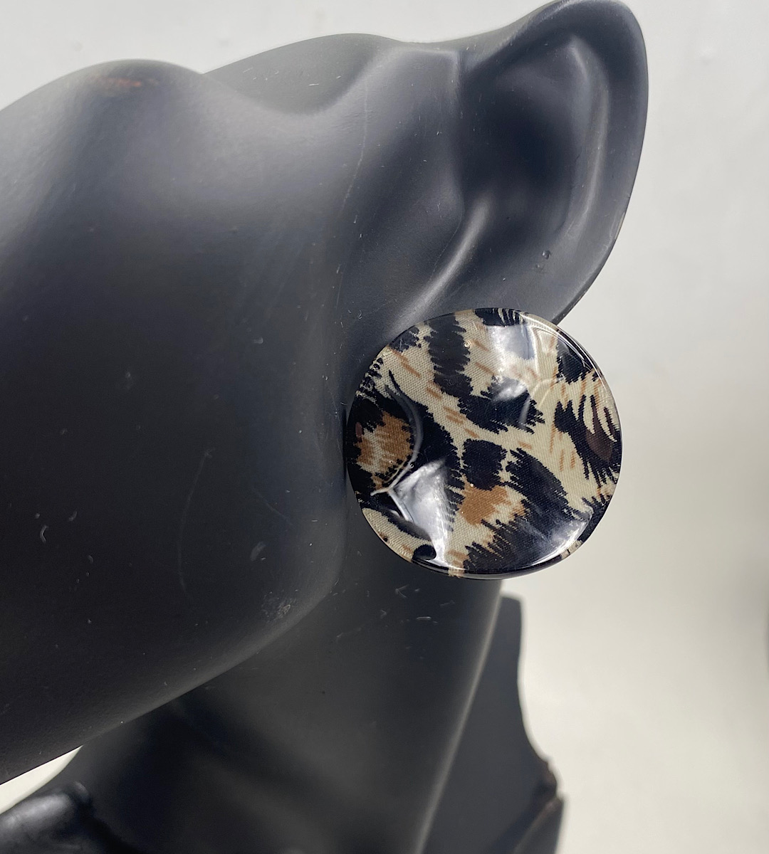 Καρφωτά σκουλαρίκια στρογγυλά λεοπάρ