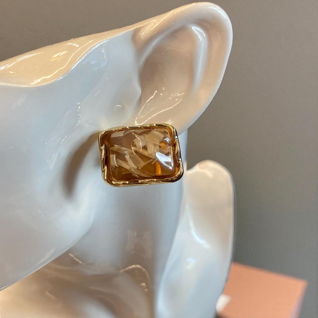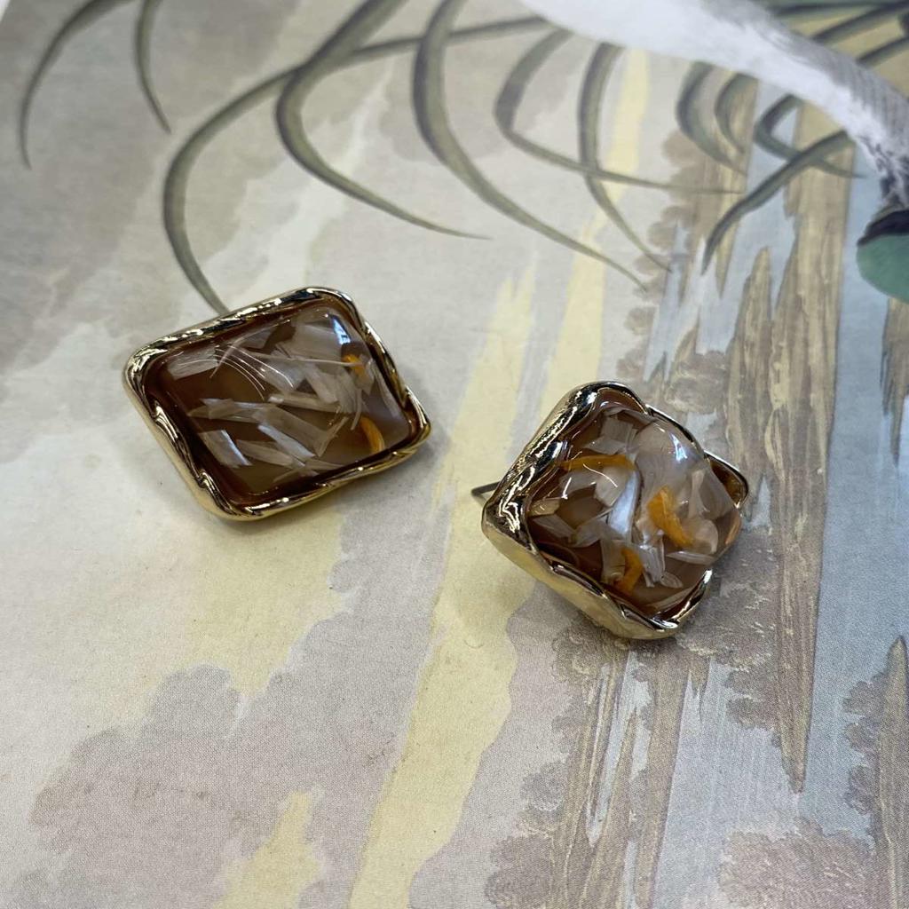 Τετράγωνα, καρφωτά σκουλαρίκια, σε καφέ χρώμα, με υγρό γυαλί