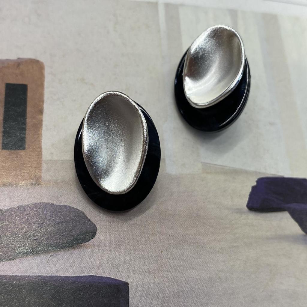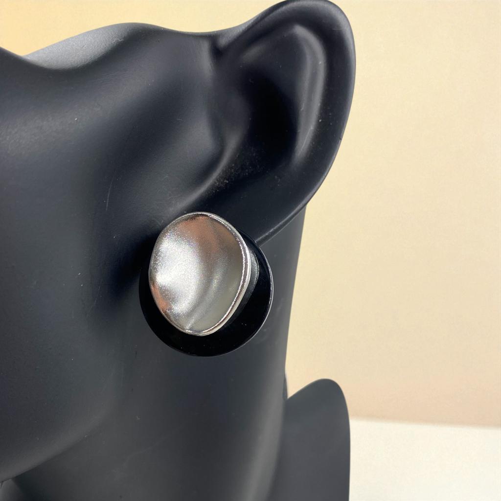 Δίχρωμα, καρφωτά σκουλαρίκια με ασημένιο καρφάκι Μαύρο και ματ ασημί